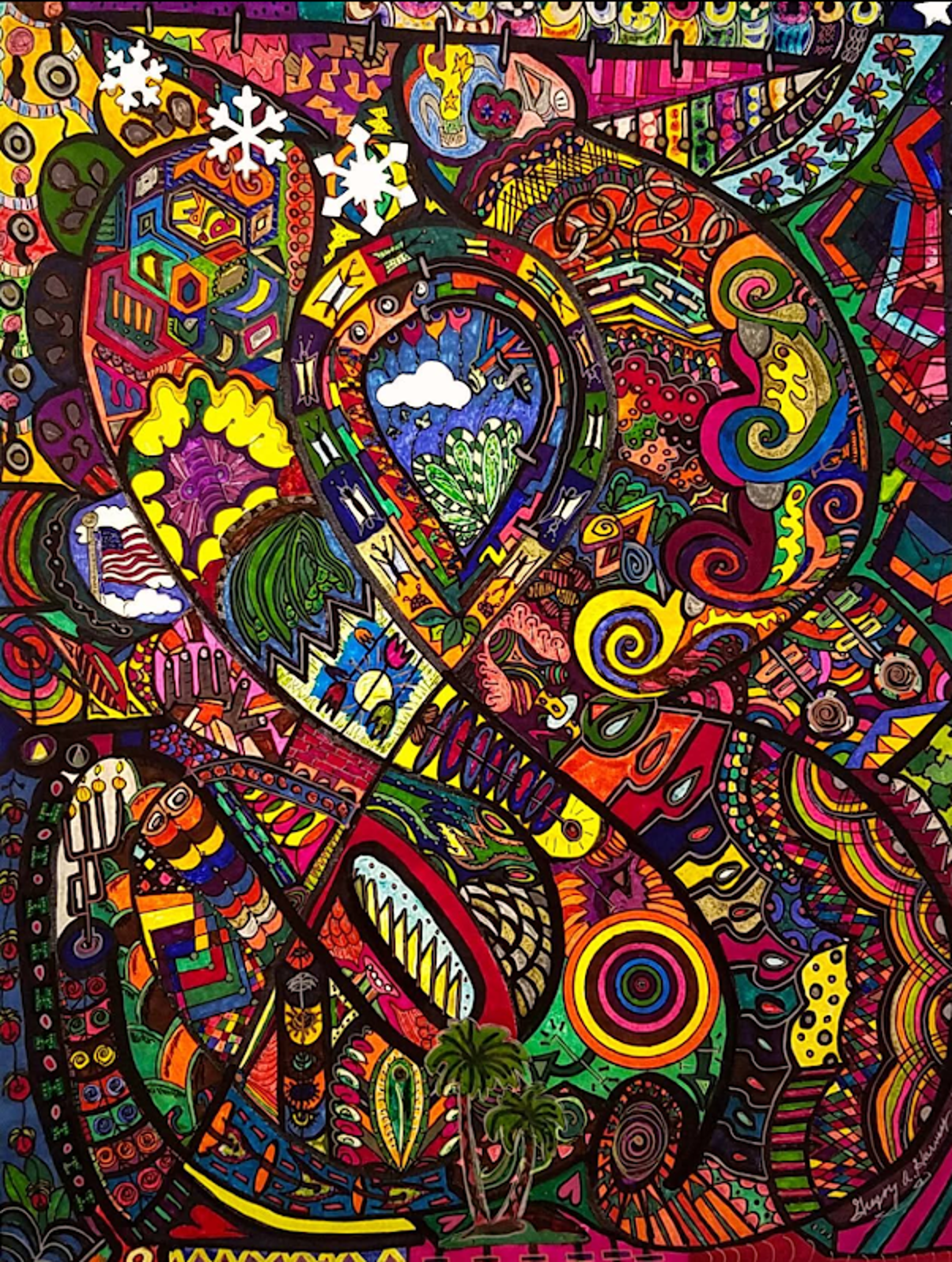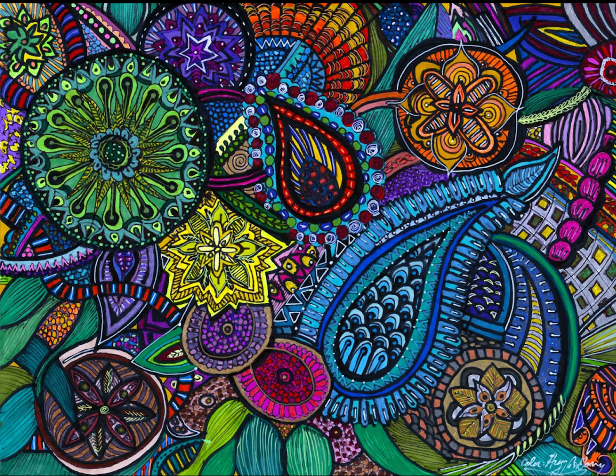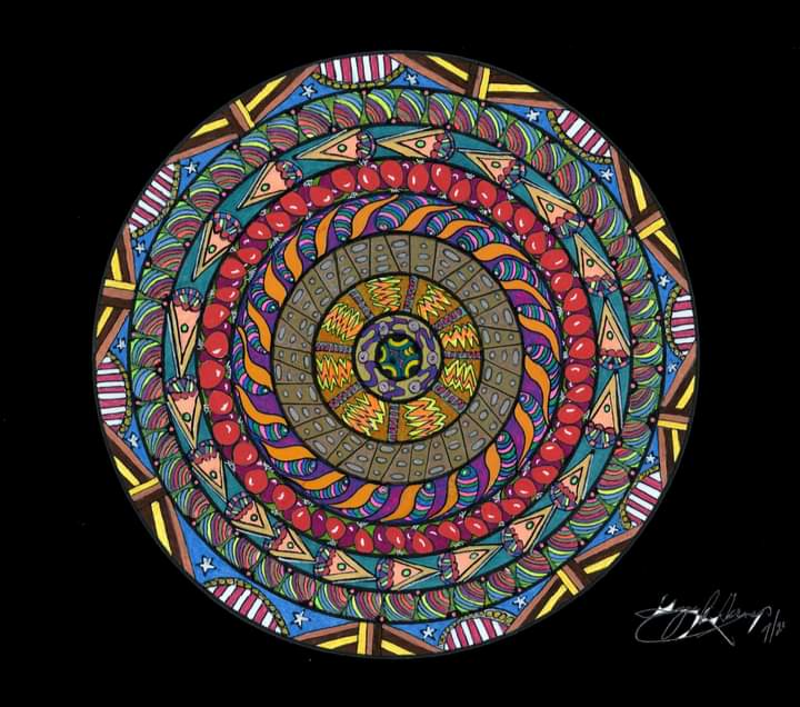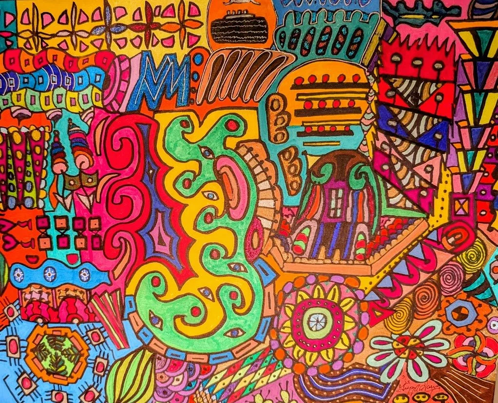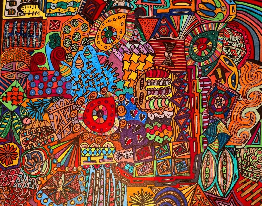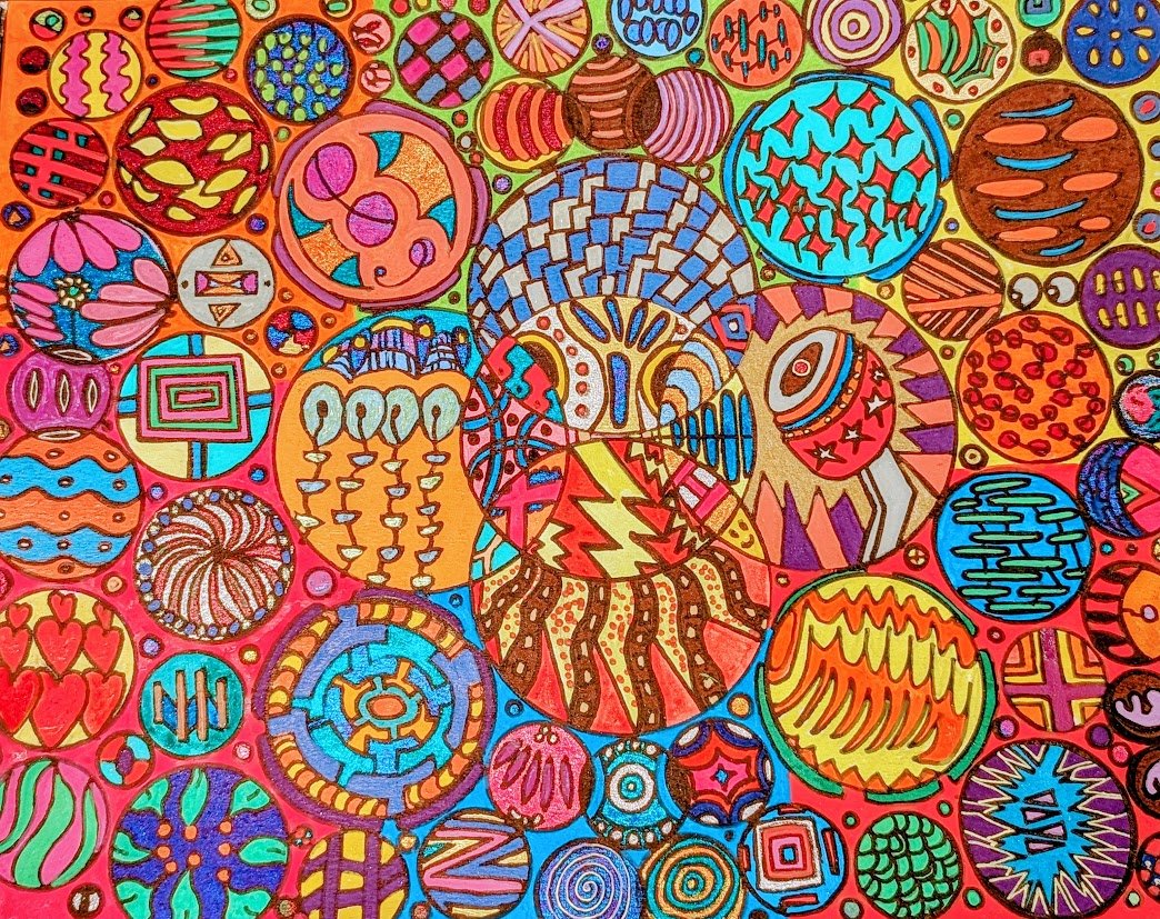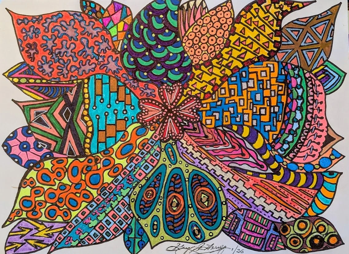I began creating abstract Zentangle pen and ink art, and then branched into mixed media, paints, gels, glitter pens, and even digital manipulation.