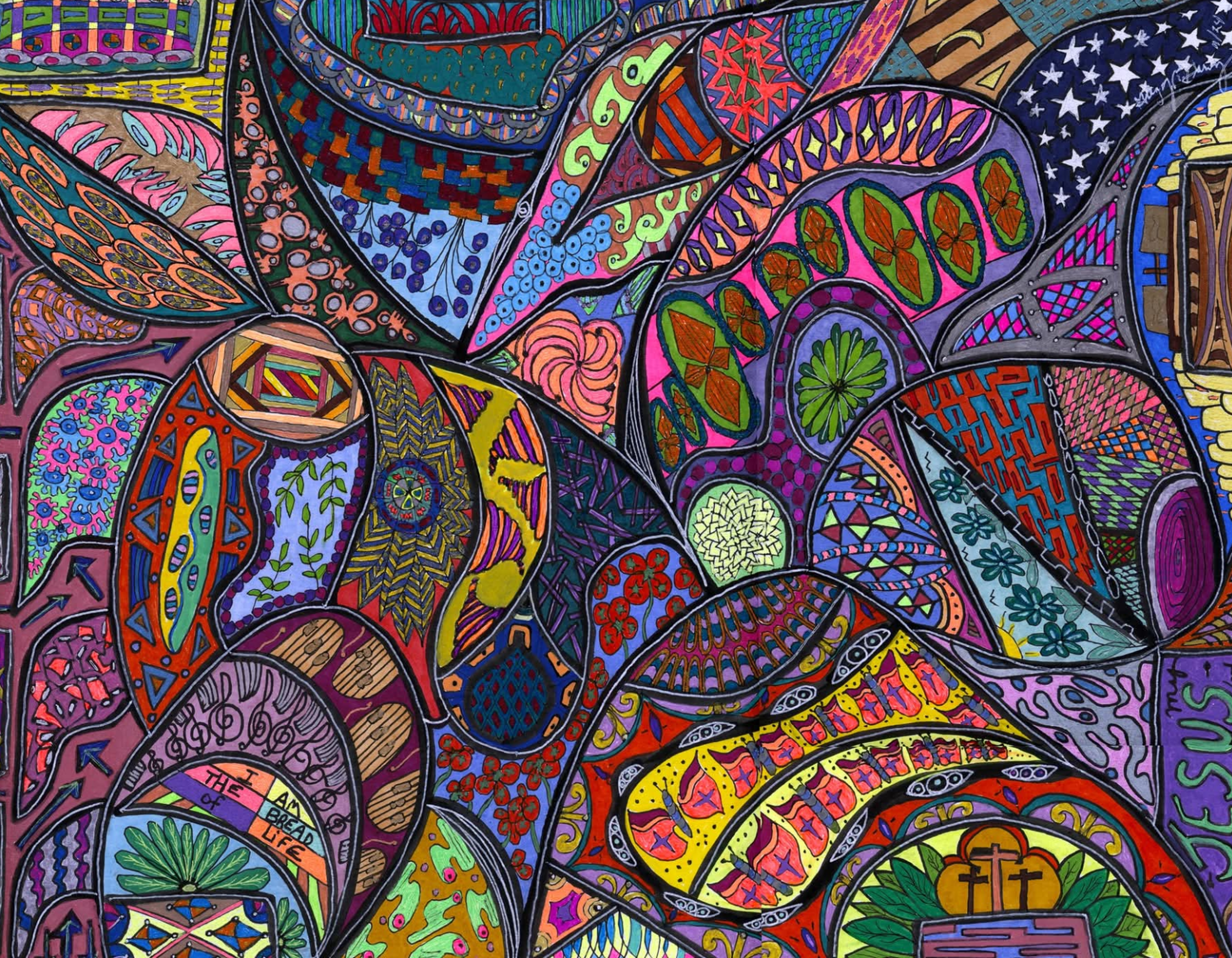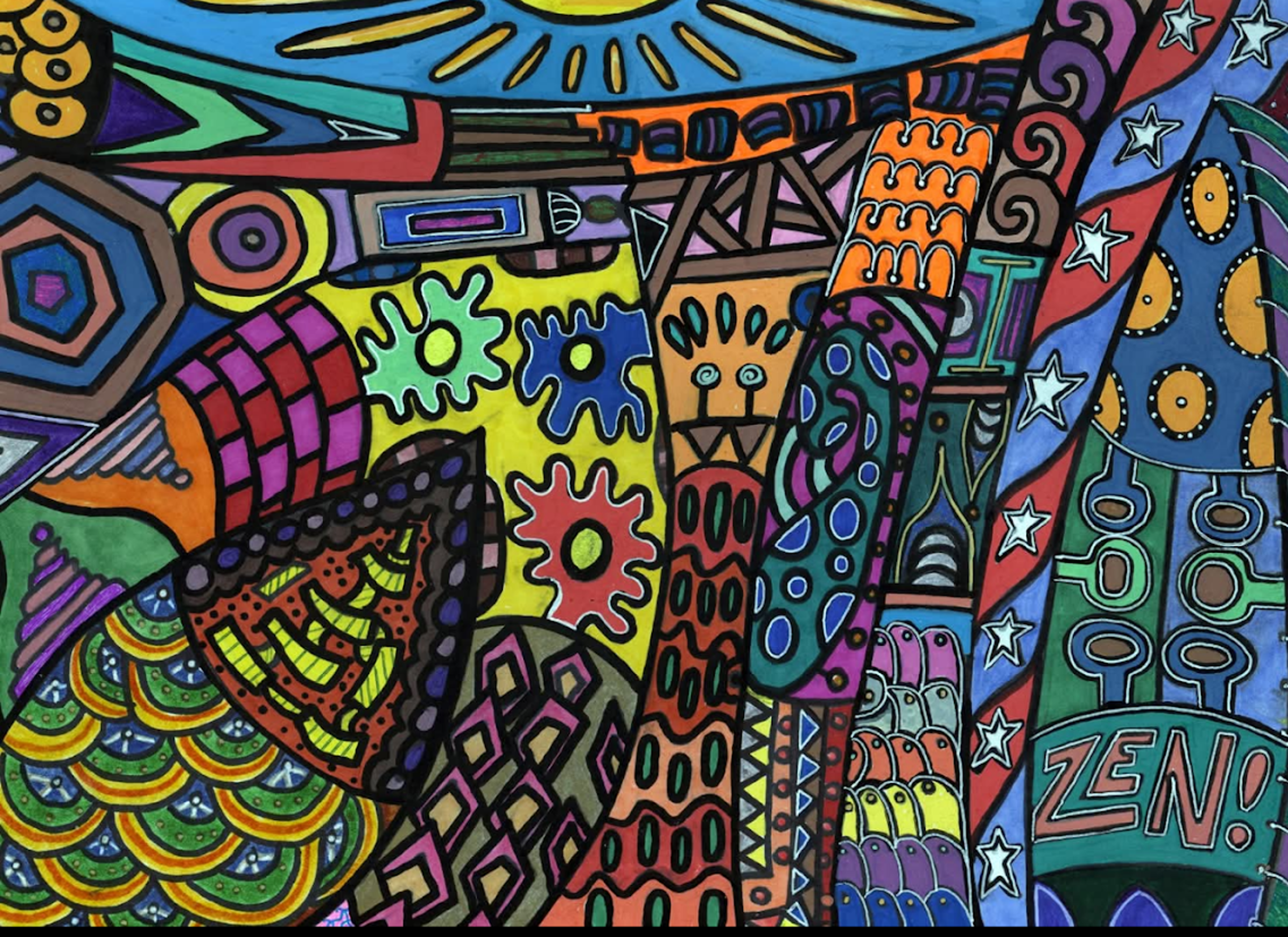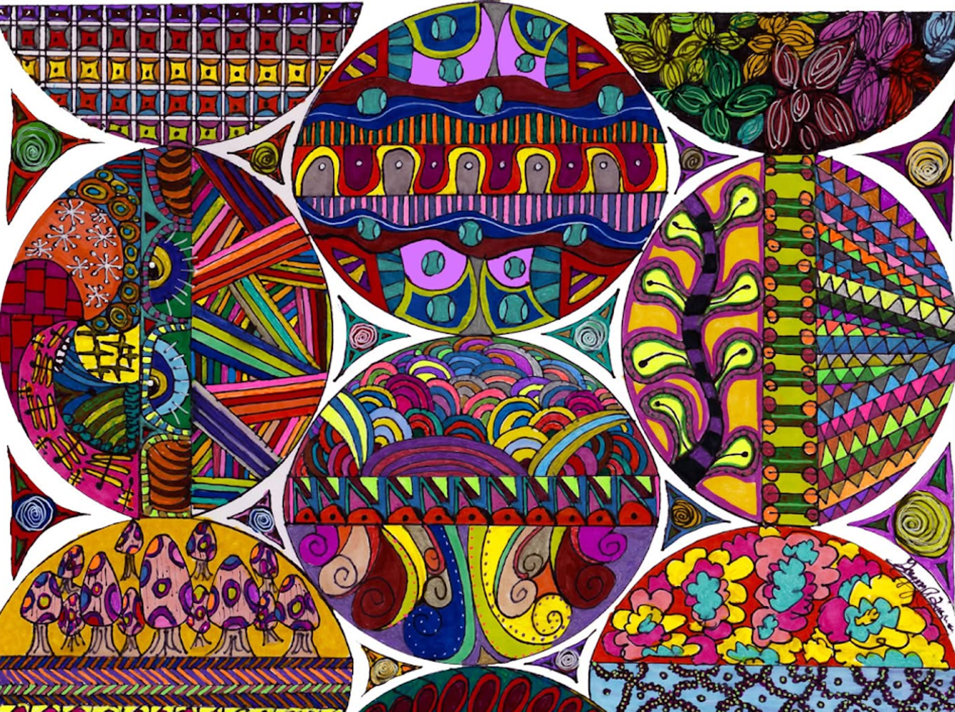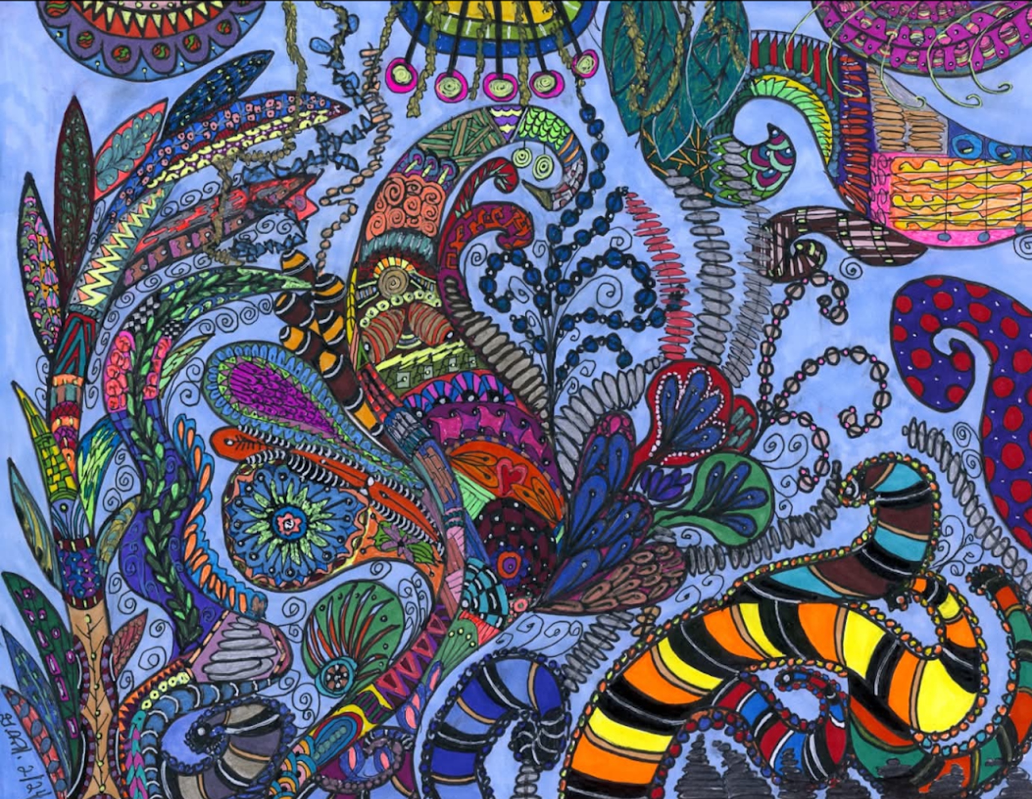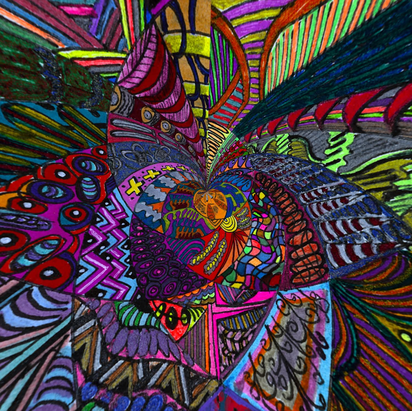 I began creating abstract Zentangle pen and ink art, and then branched into mixed media, paints, gels, glitter pens, and even digital manipulation.