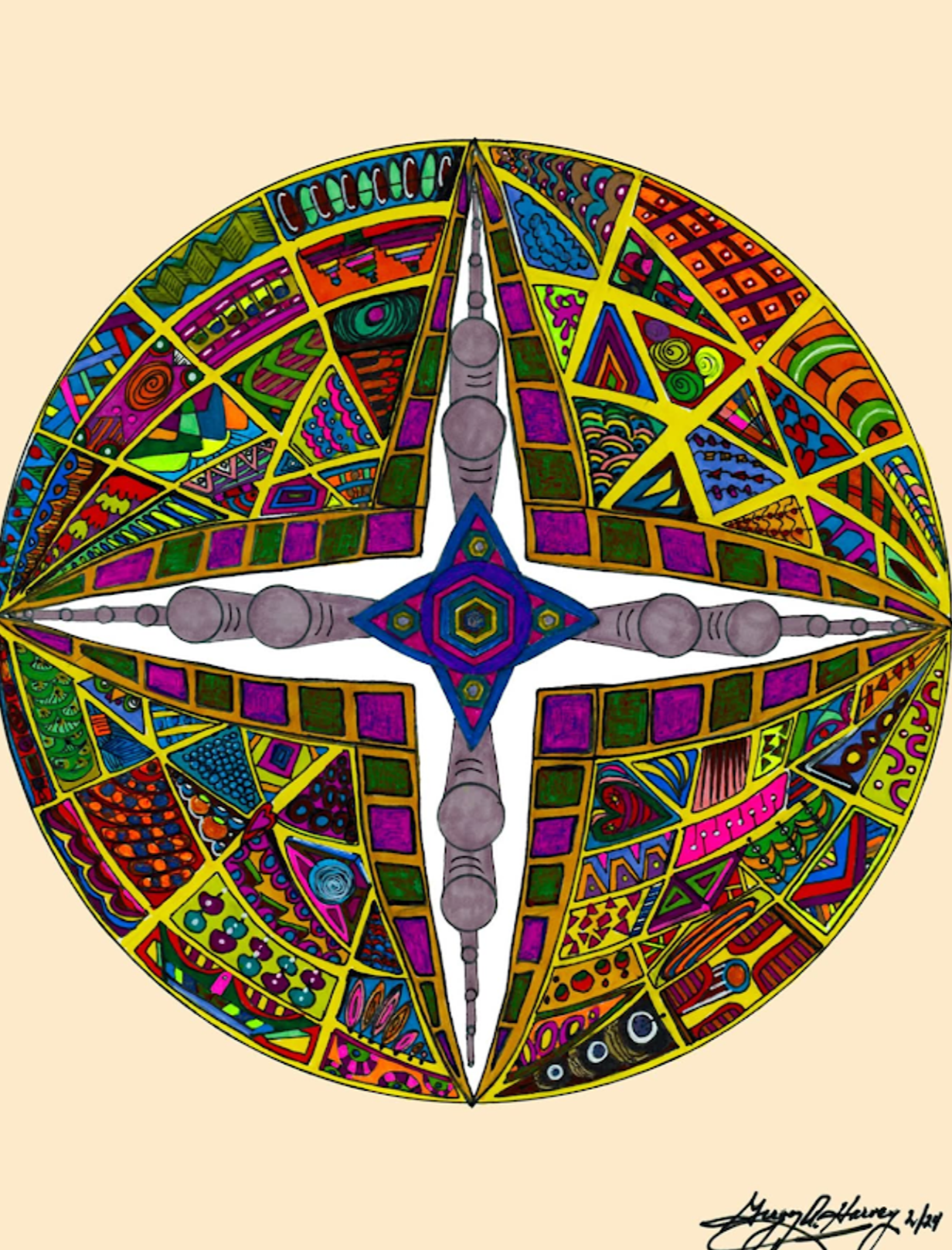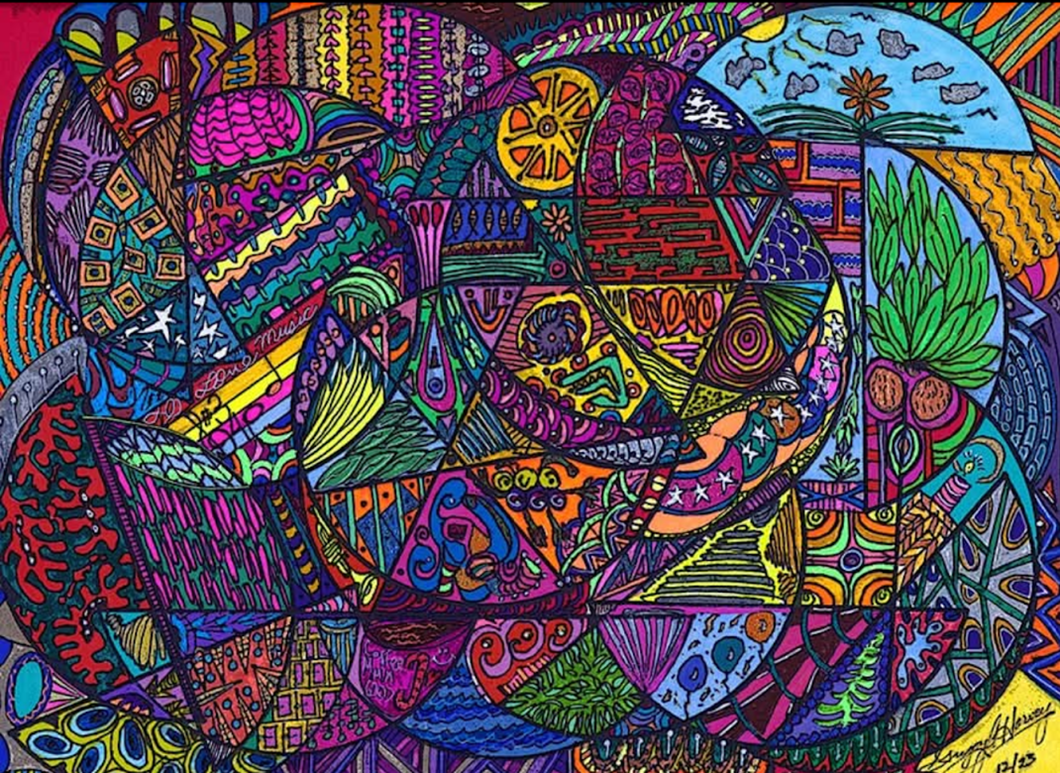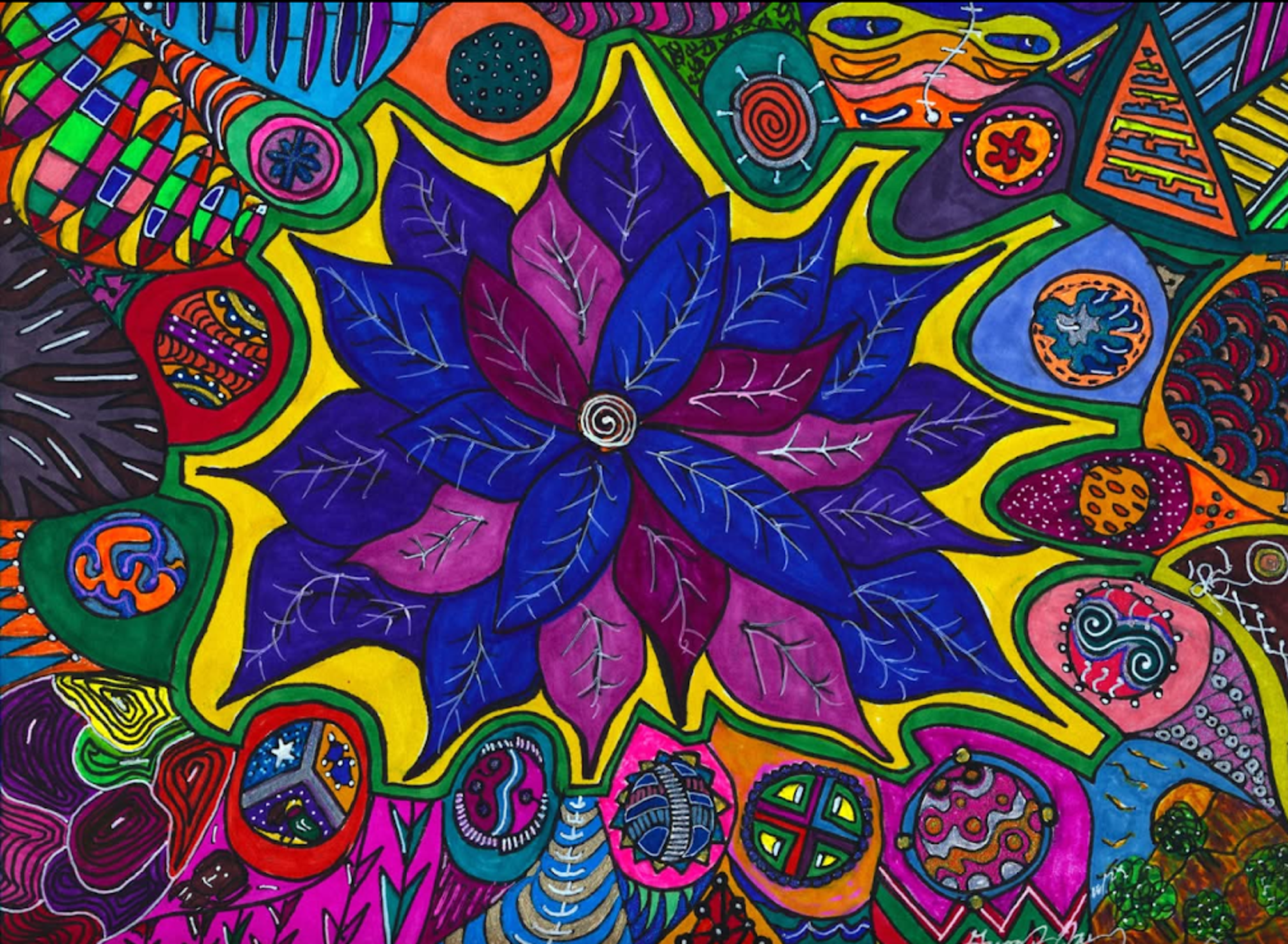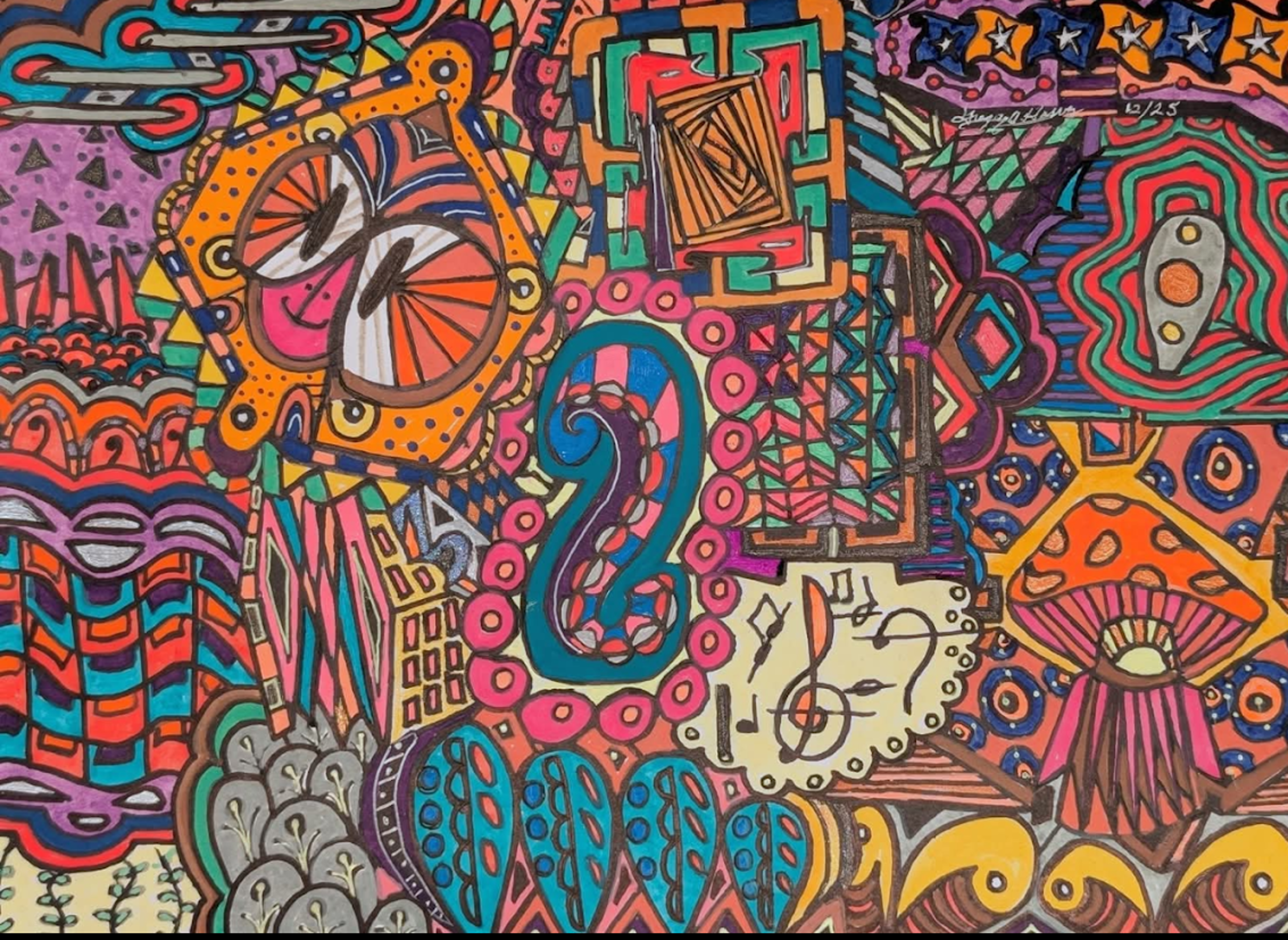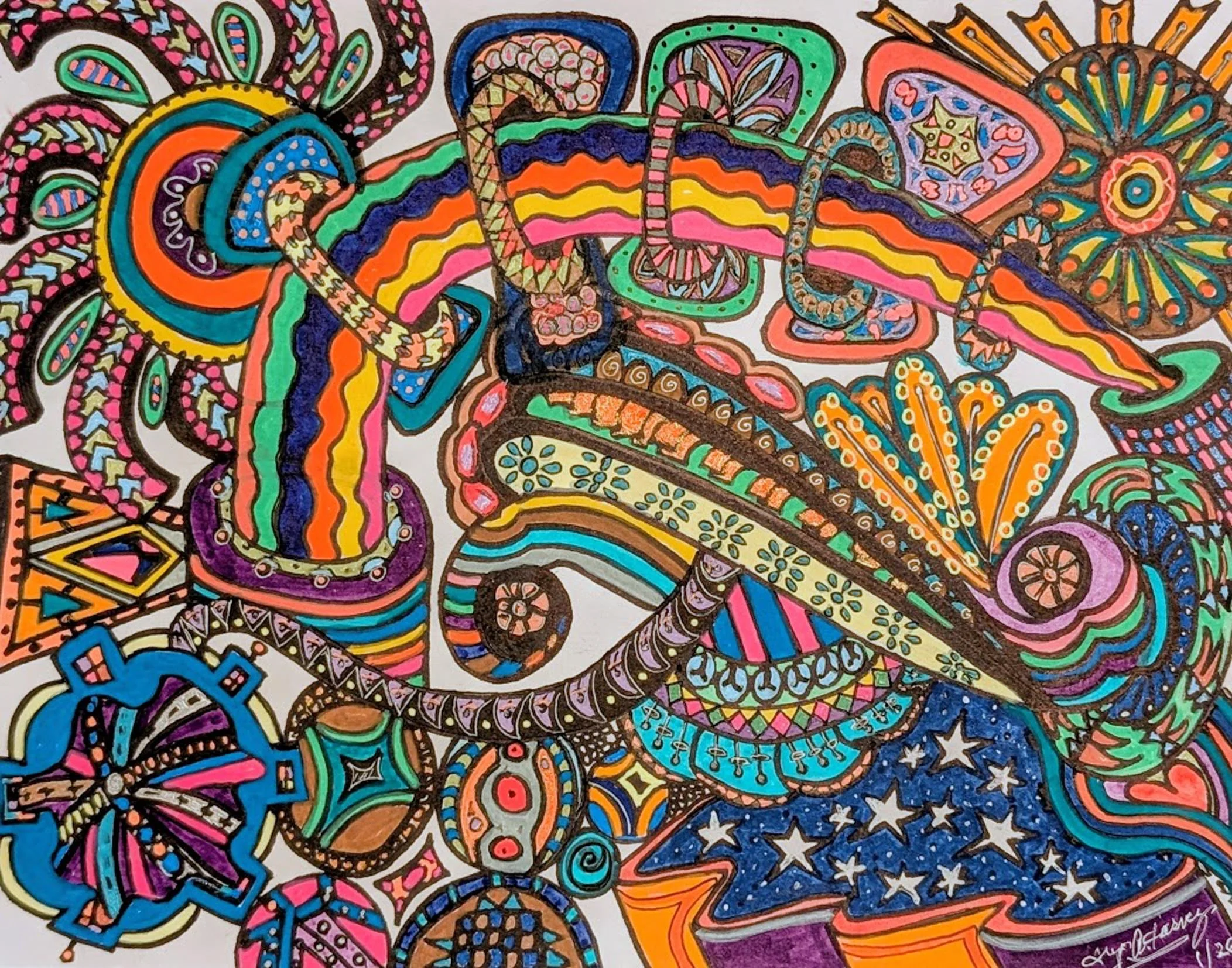 I began creating abstract Zentangle pen and ink art, and then branched into mixed media, paints, gels, glitter pens, and even digital manipulation.