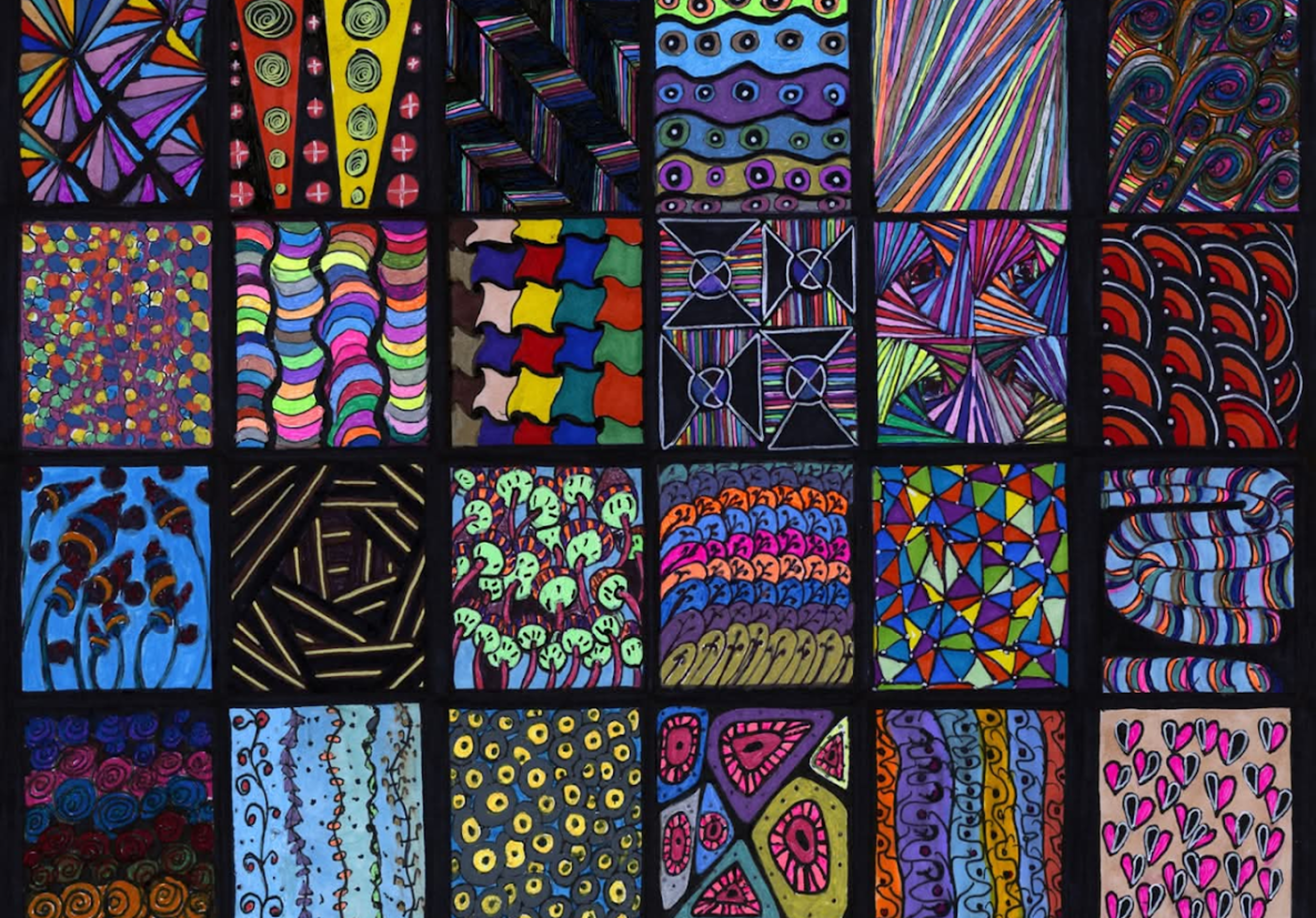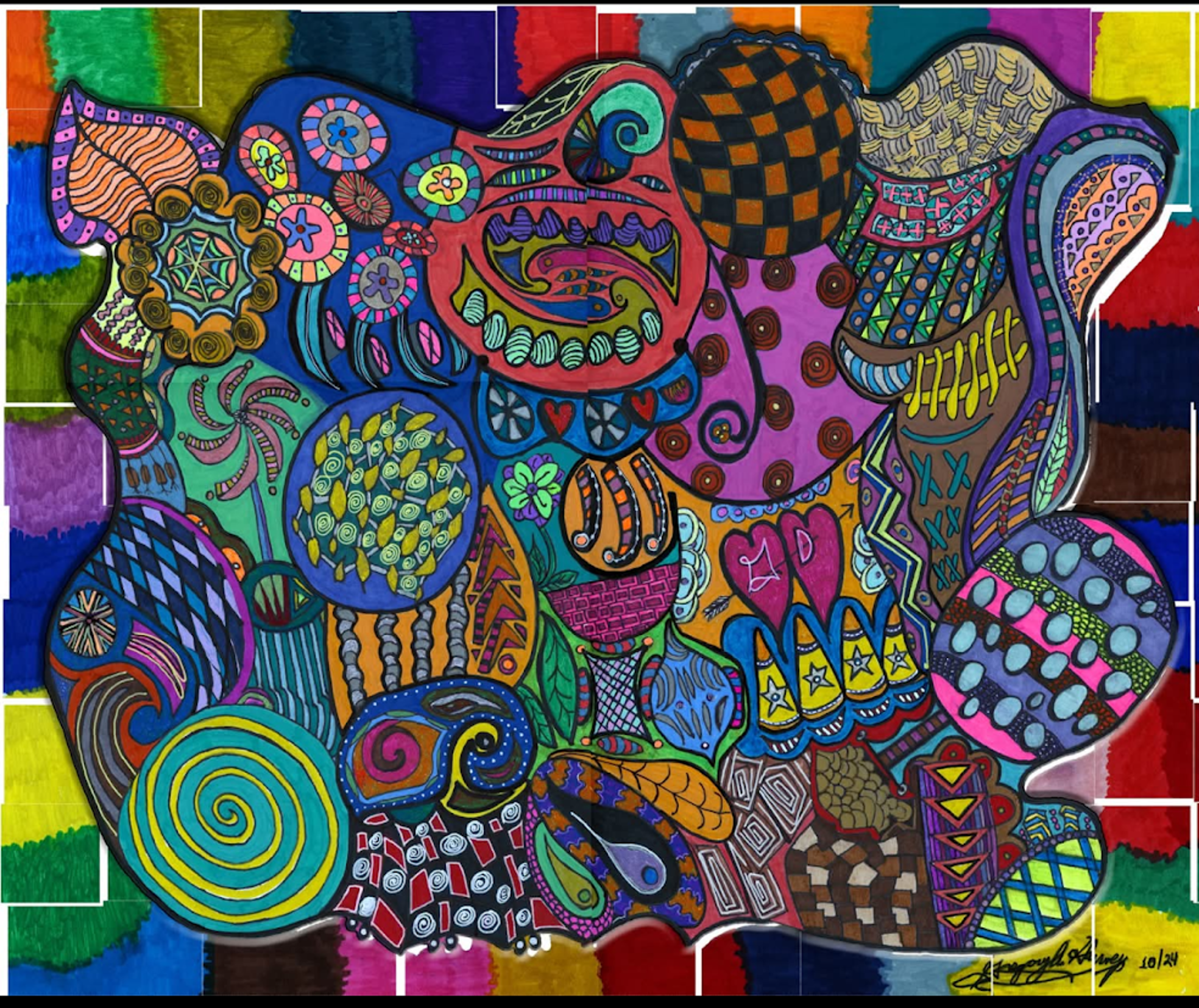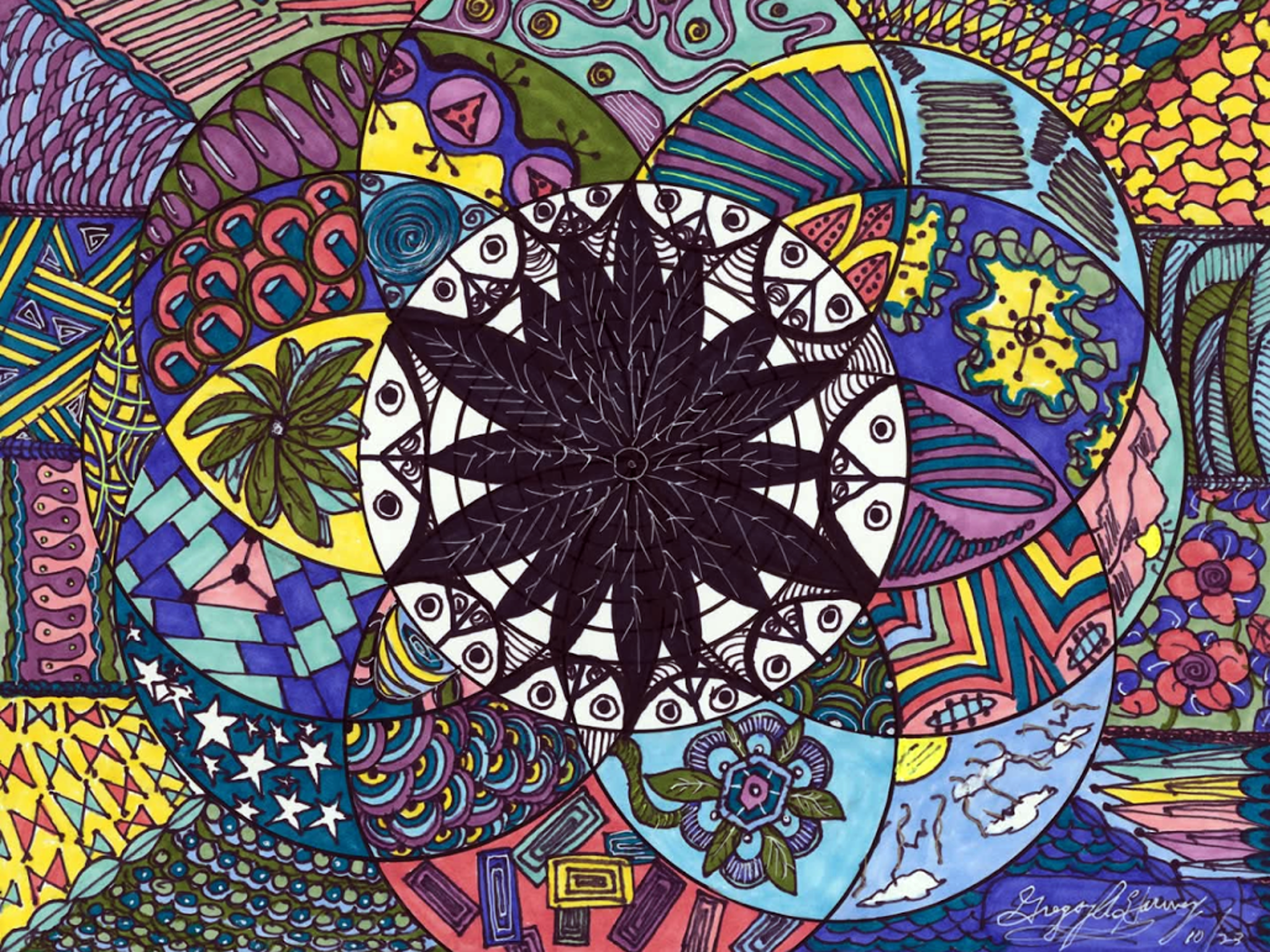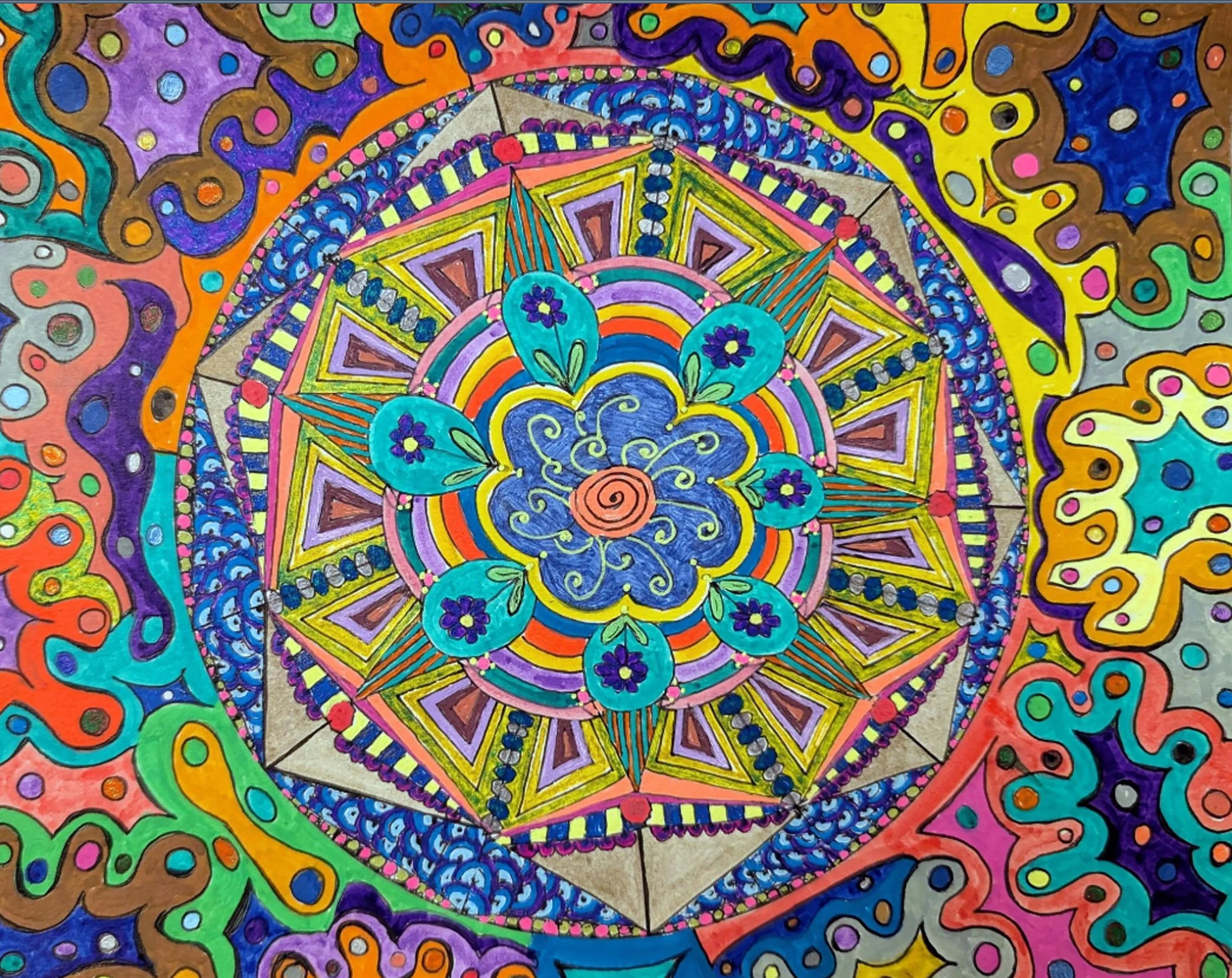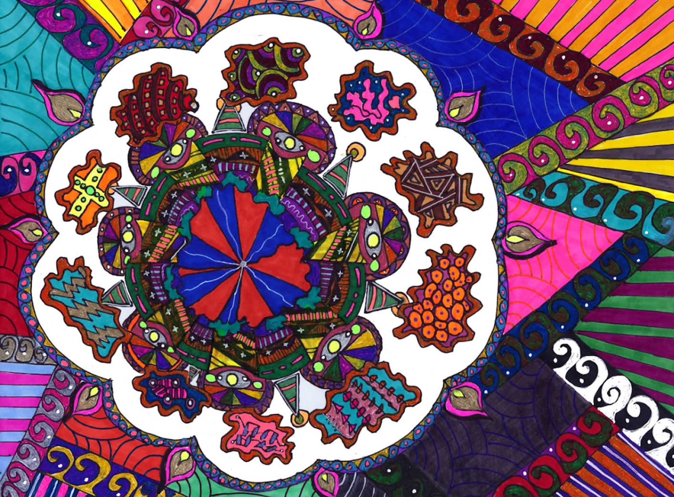 I began creating abstract Zentangle pen and ink art, and then branched into mixed media, paints, gels, glitter pens, and even digital manipulation.