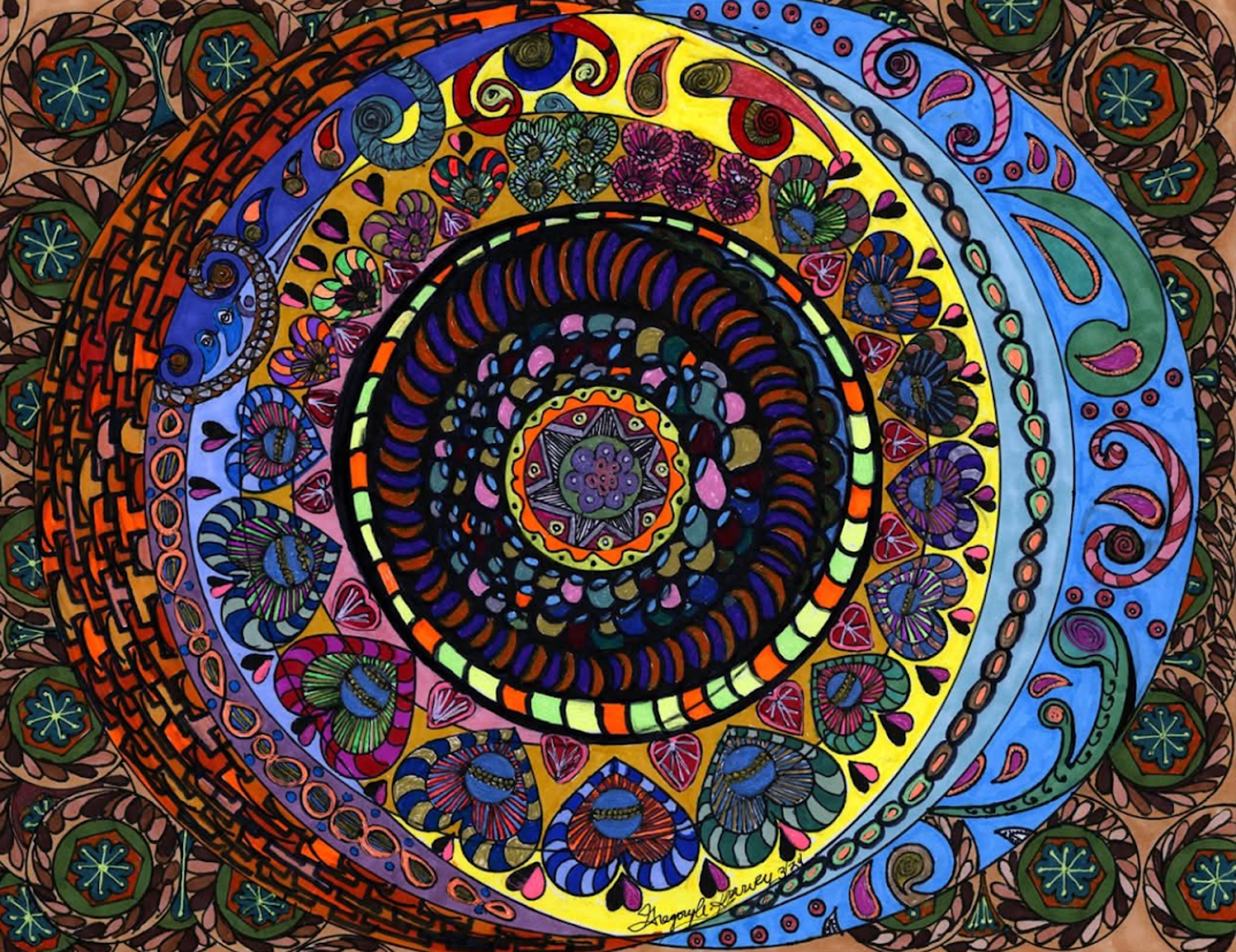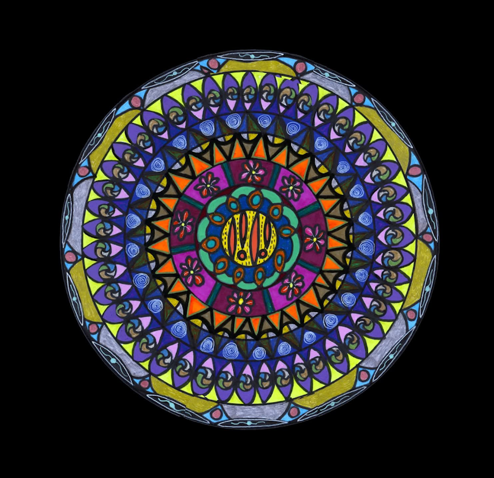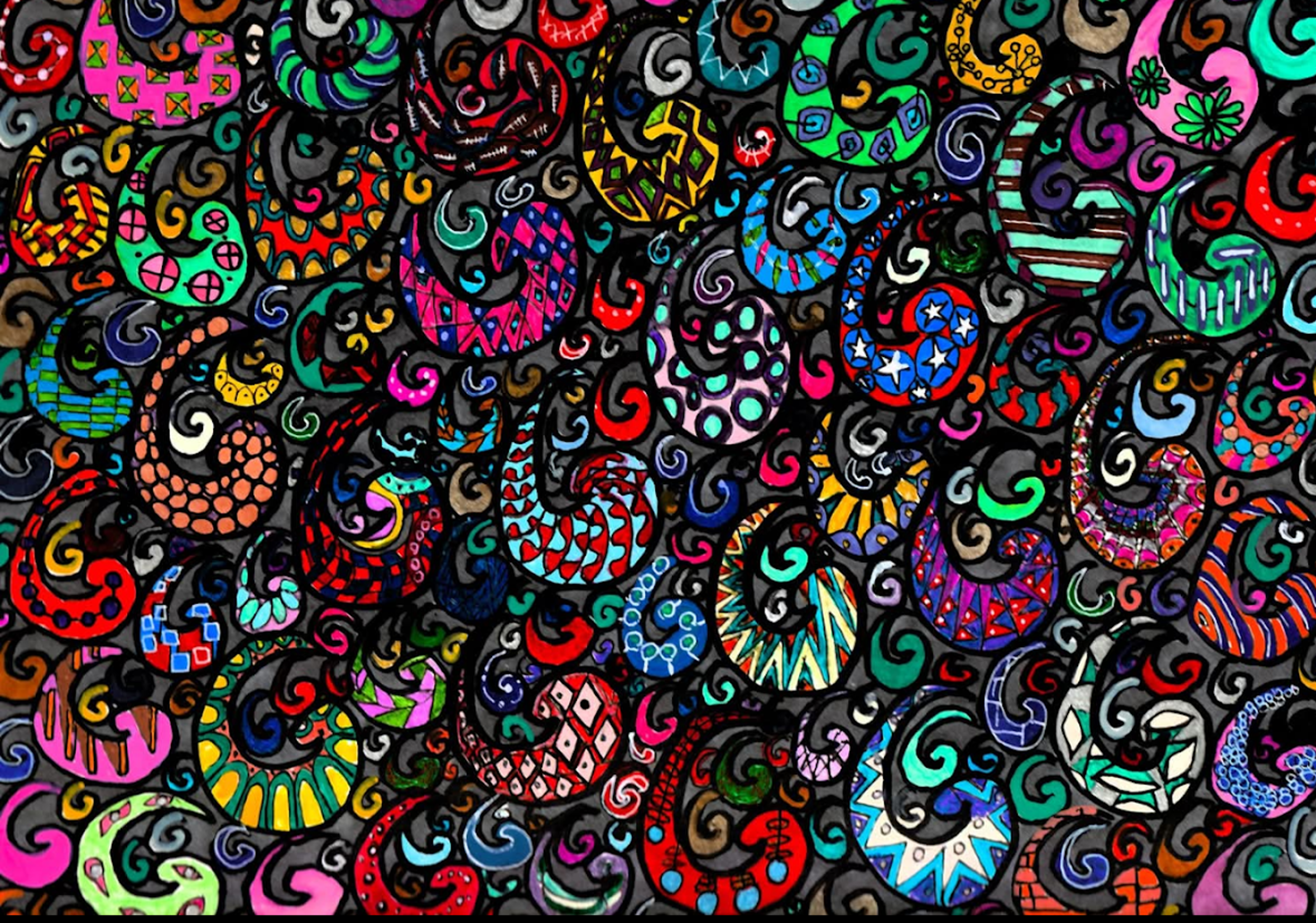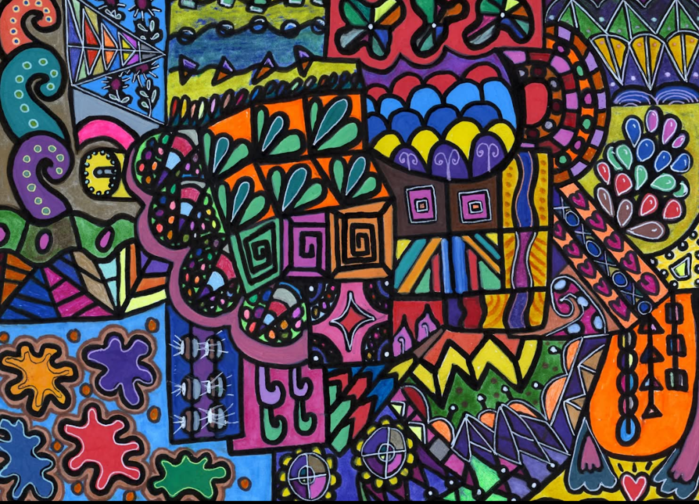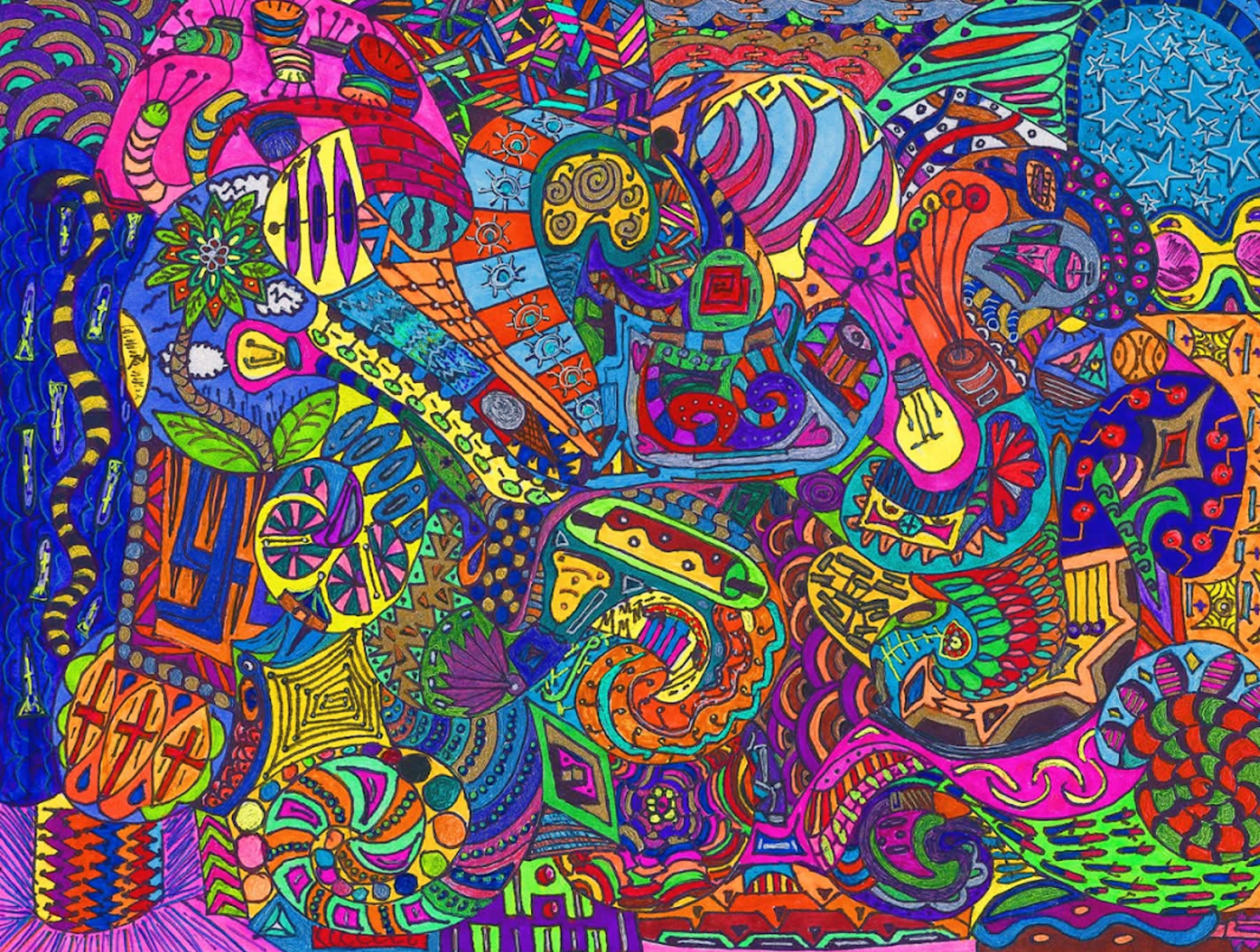 I began creating abstract Zentangle pen and ink art, and then branched into mixed media, paints, gels, glitter pens, and even digital manipulation.