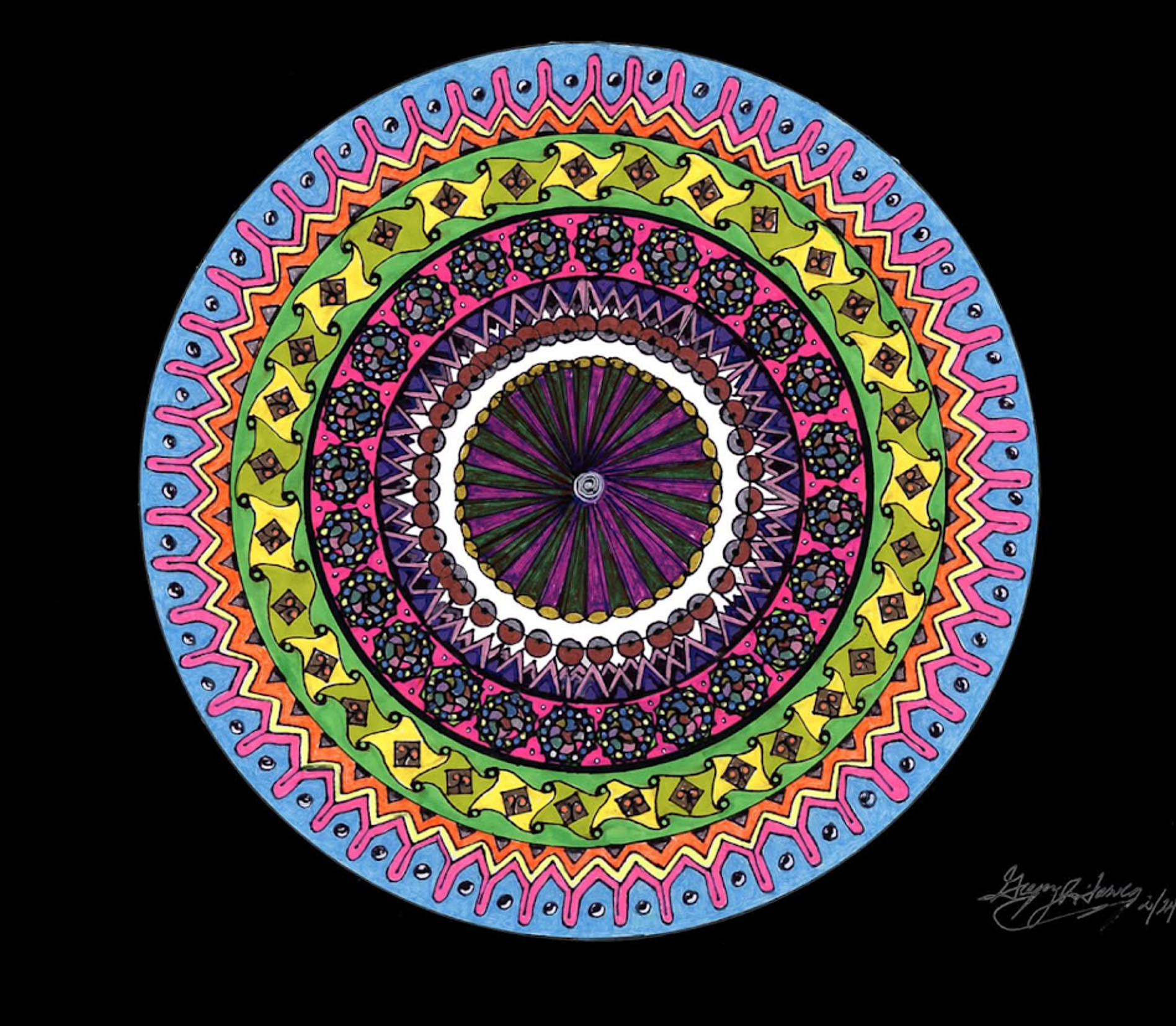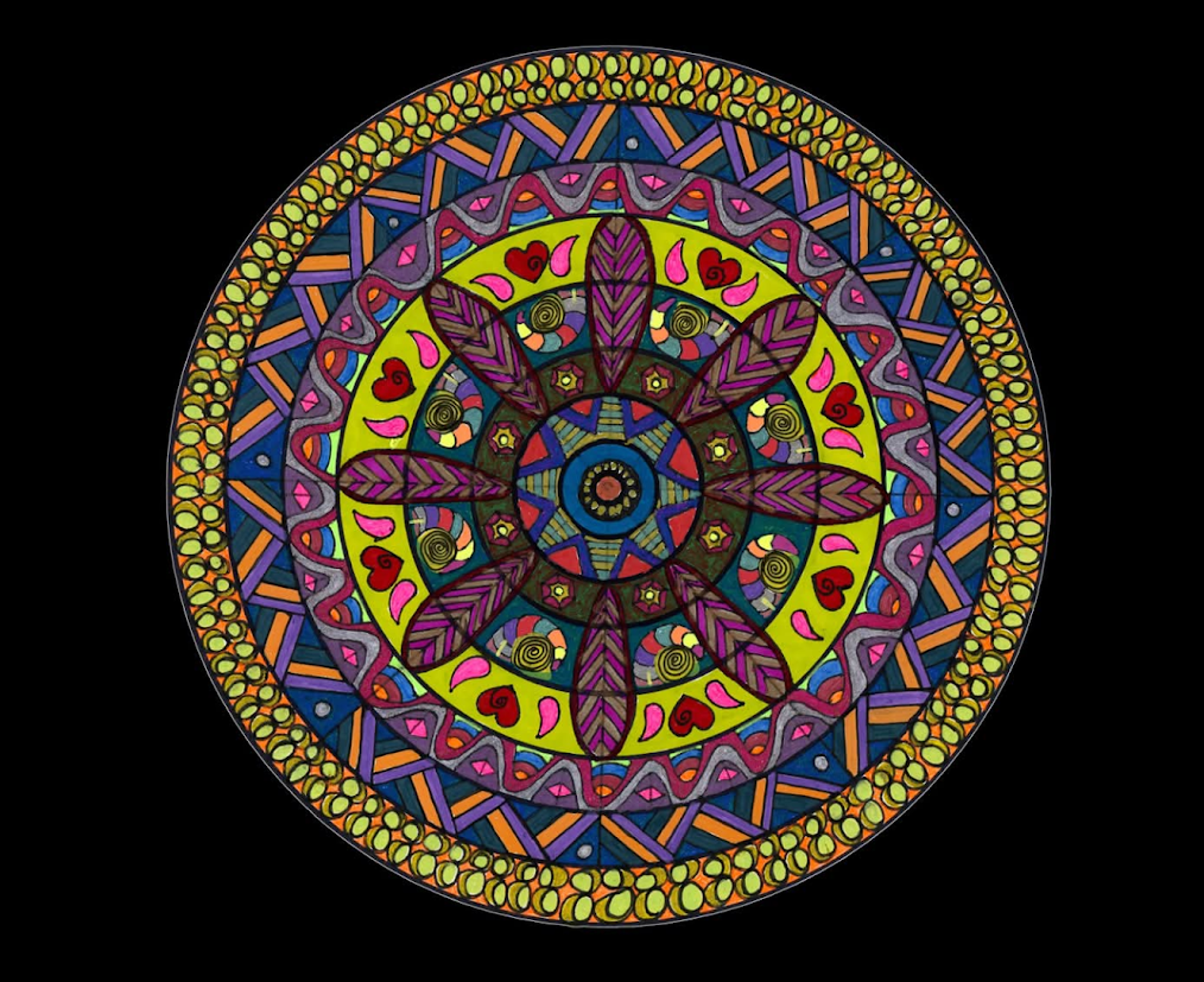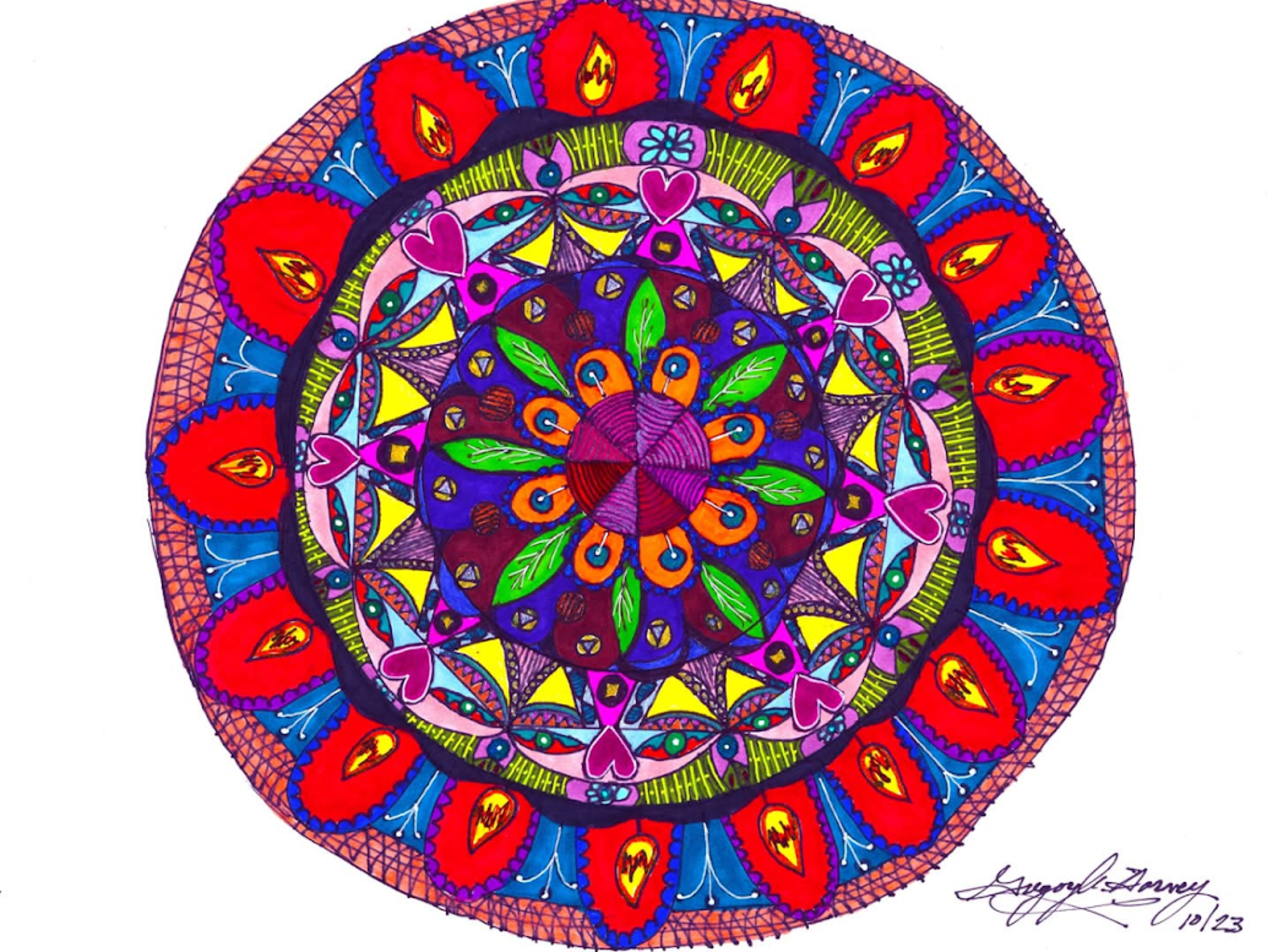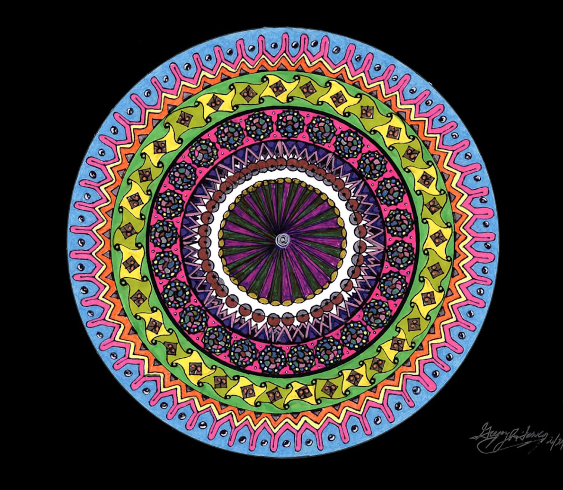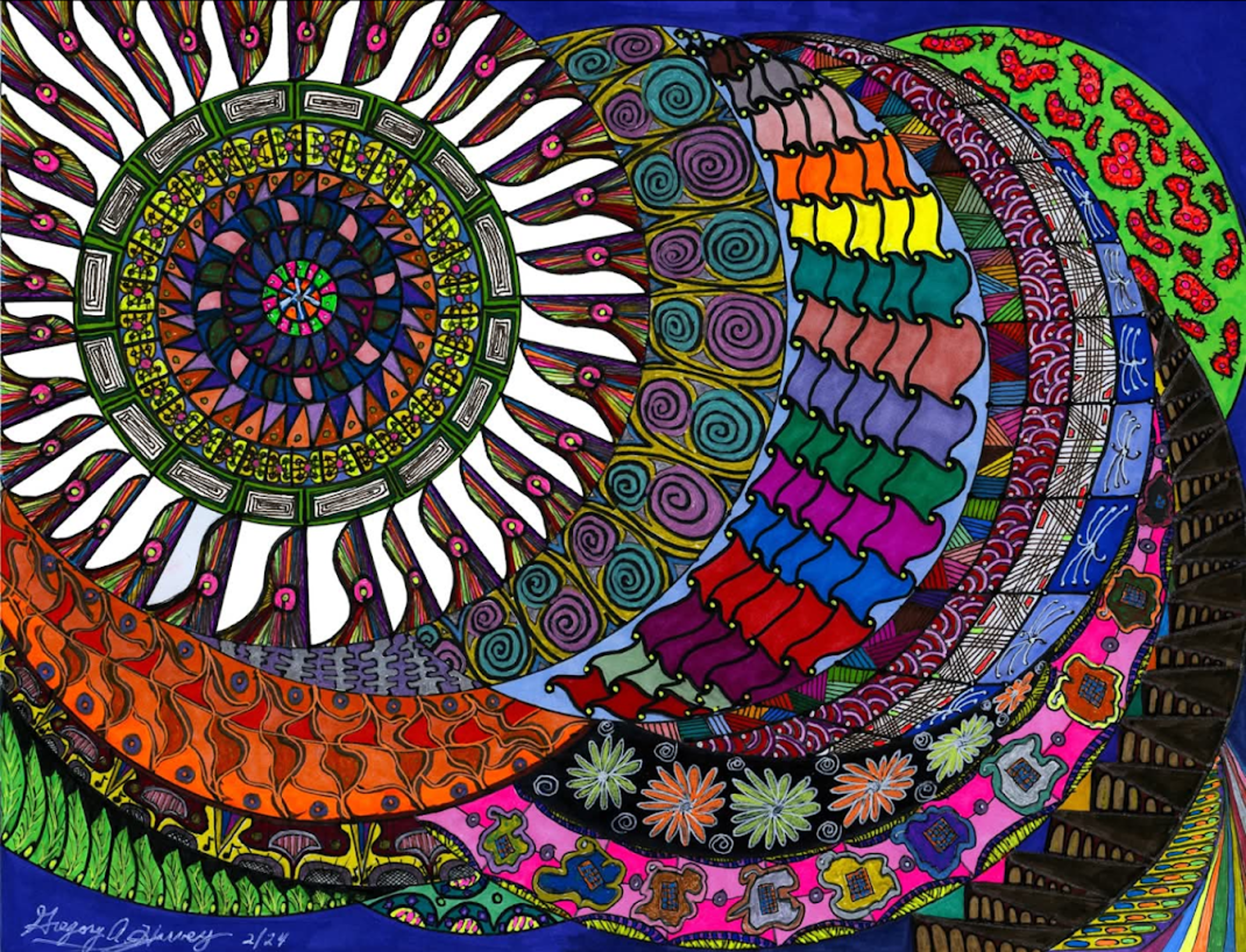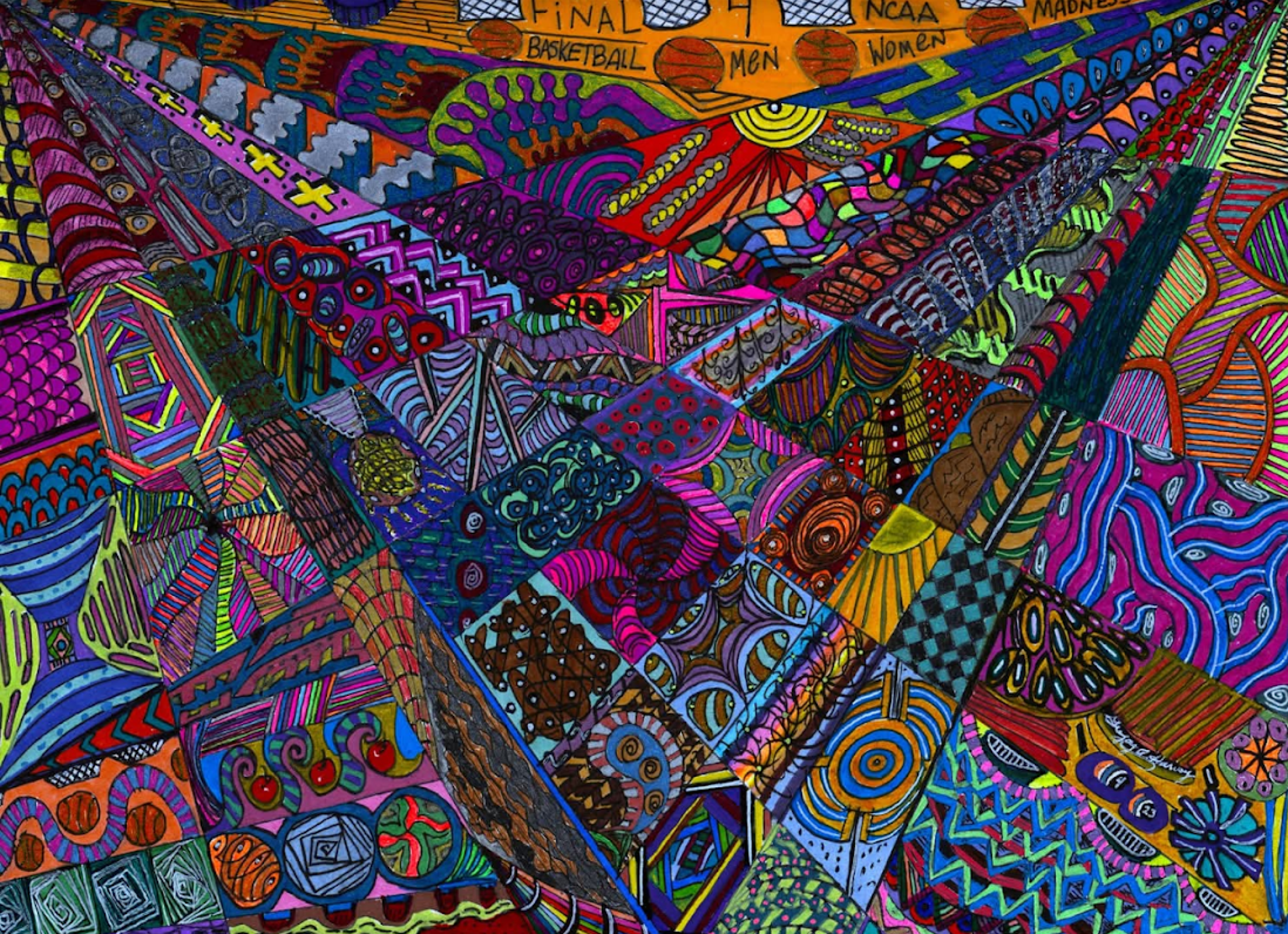 I began creating abstract Zentangle pen and ink art, and then branched into mixed media, paints, gels, glitter pens, and even digital manipulation.