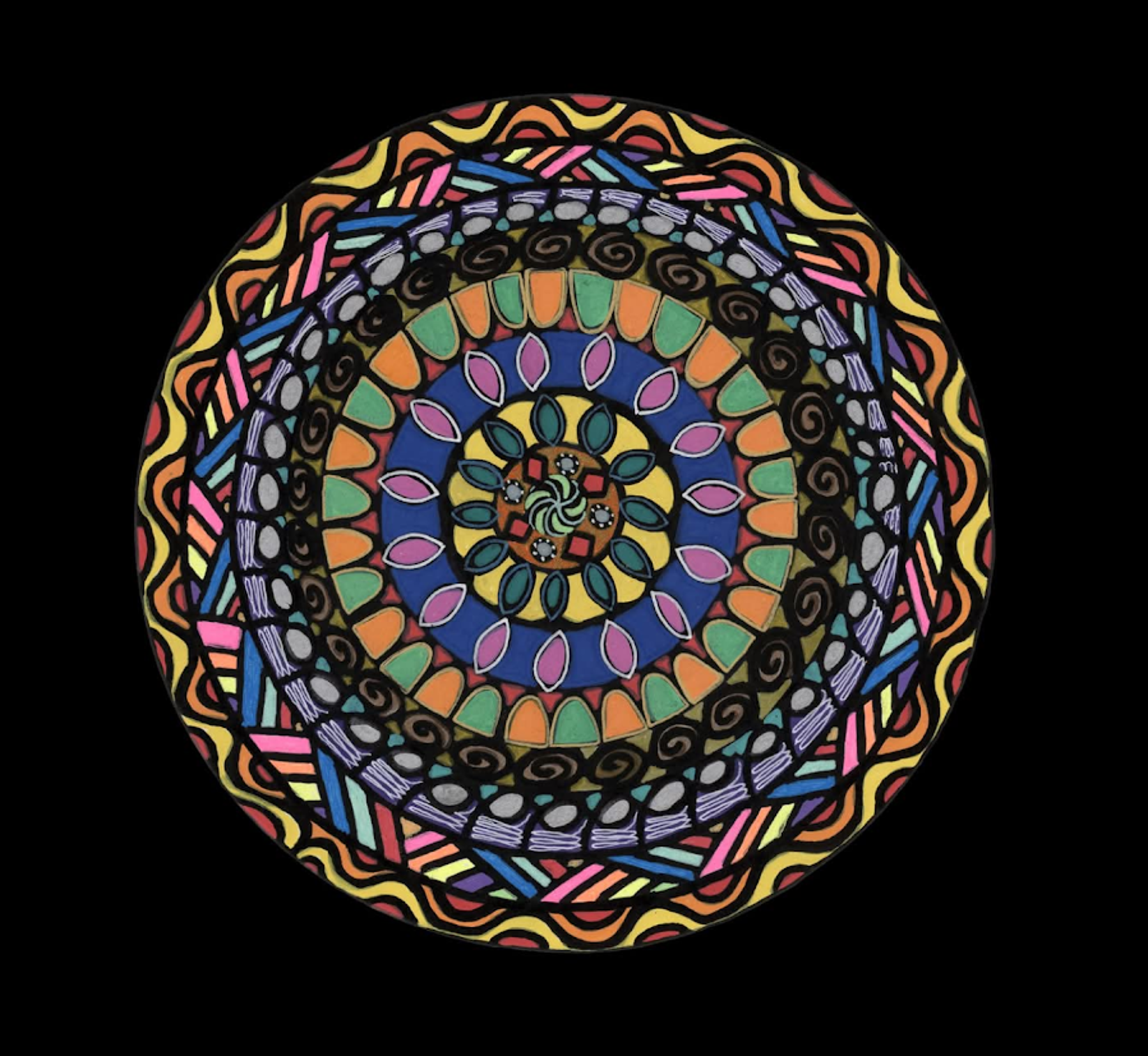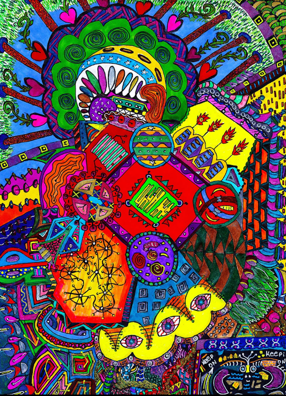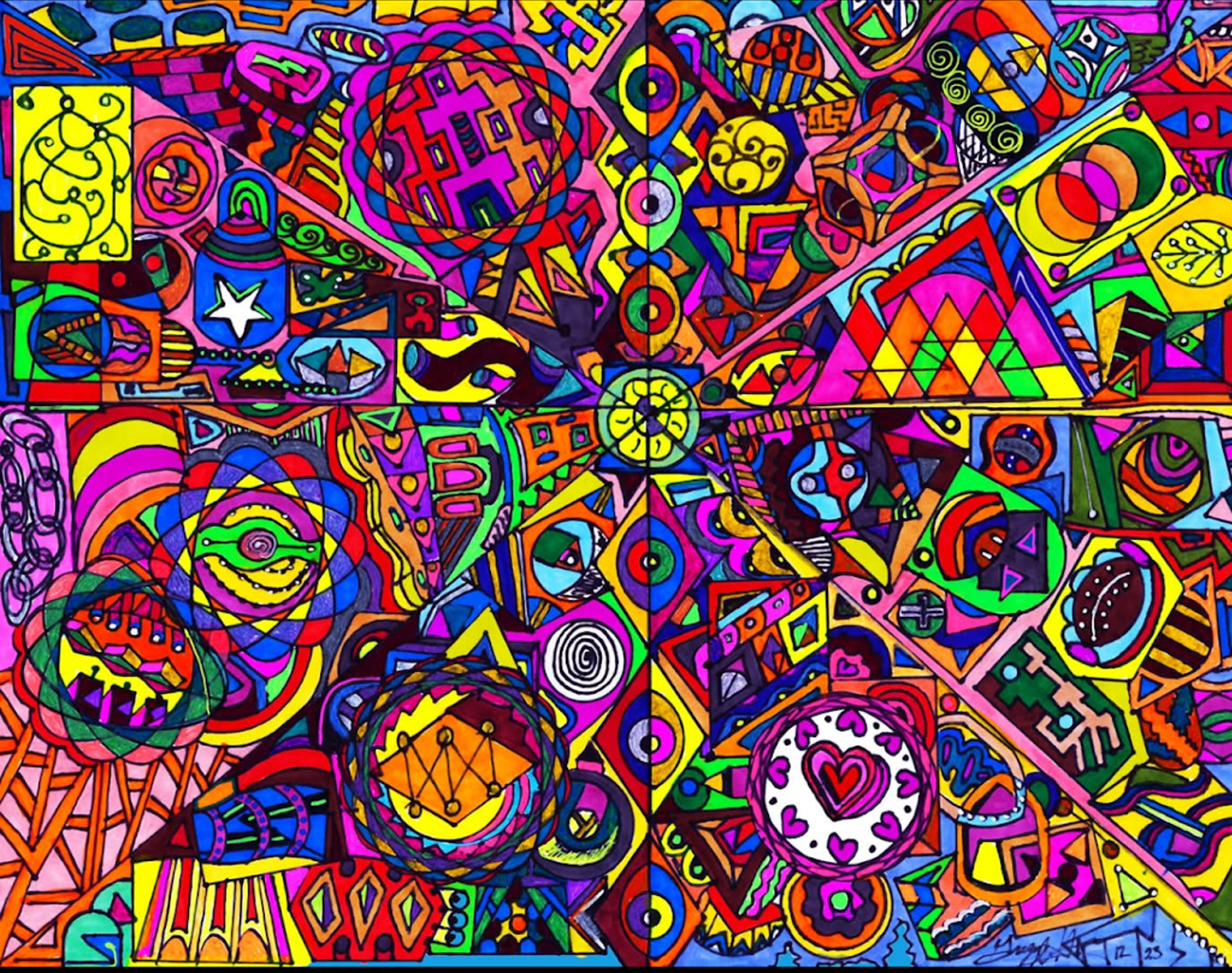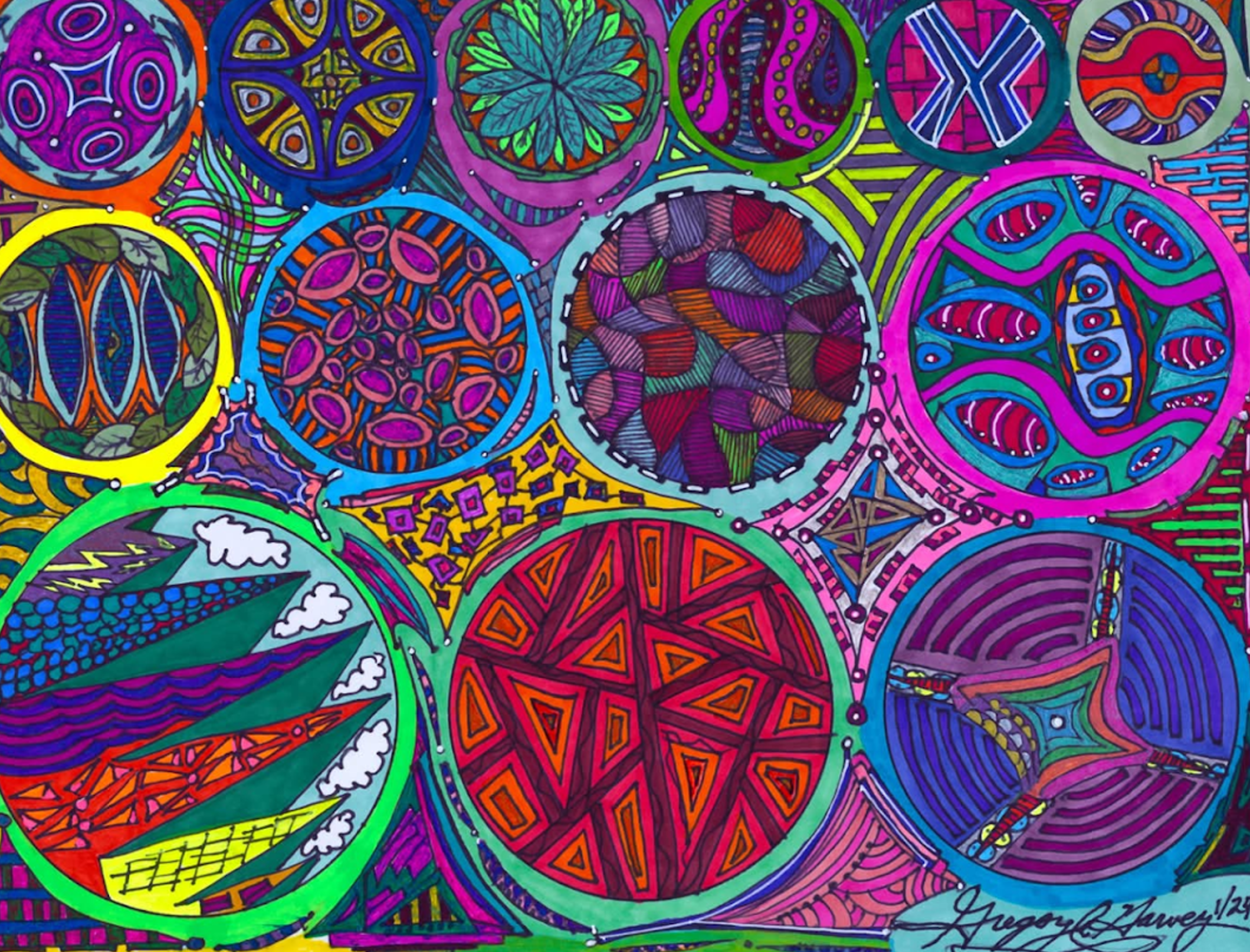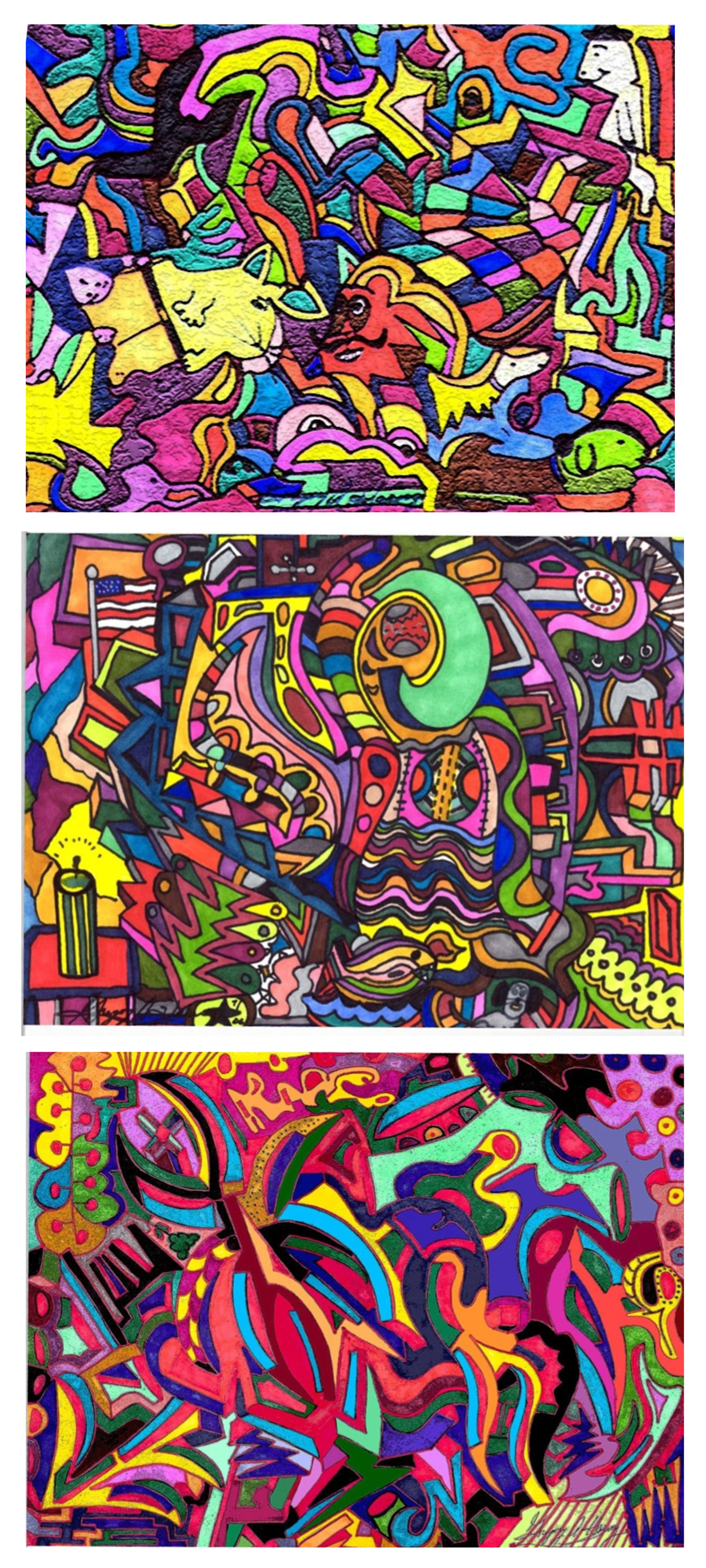 I began creating abstract Zentangle pen and ink art, and then branched into mixed media, paints, gels, glitter pens, and even digital manipulation.