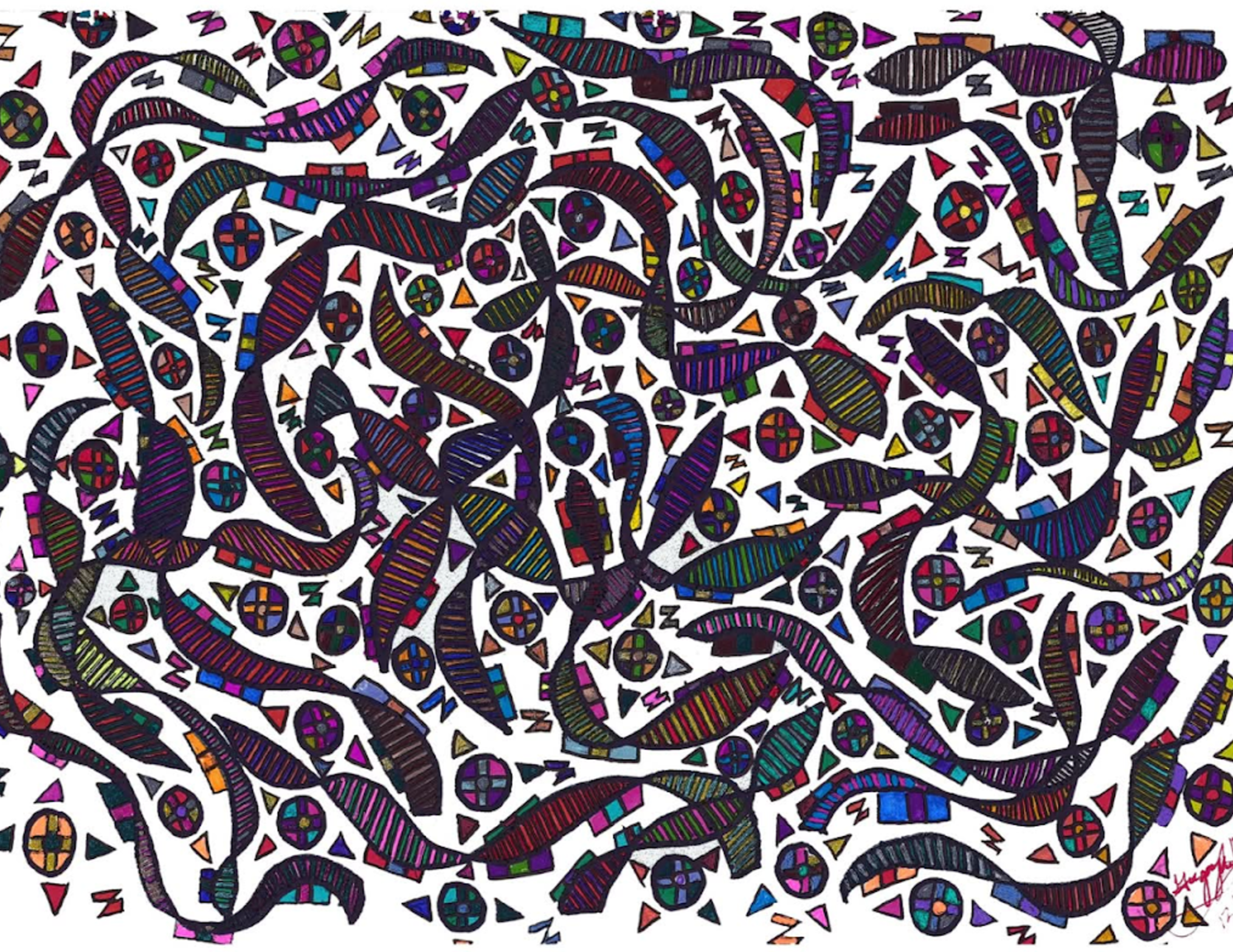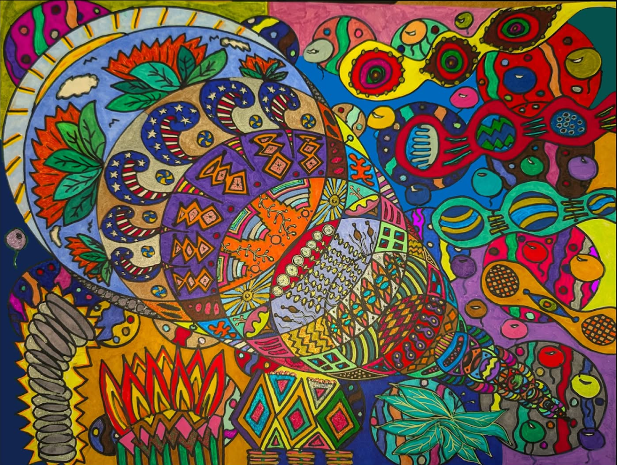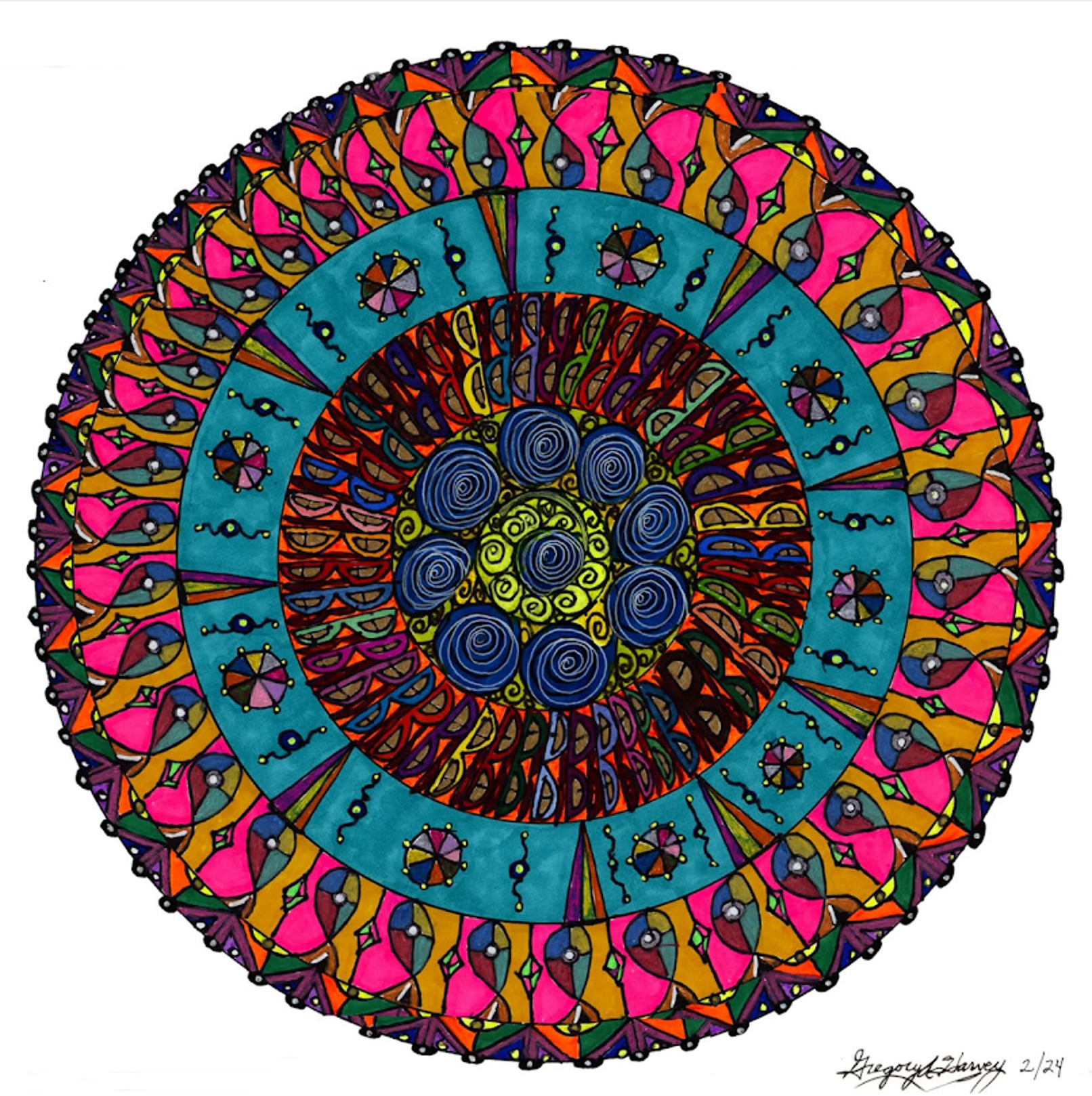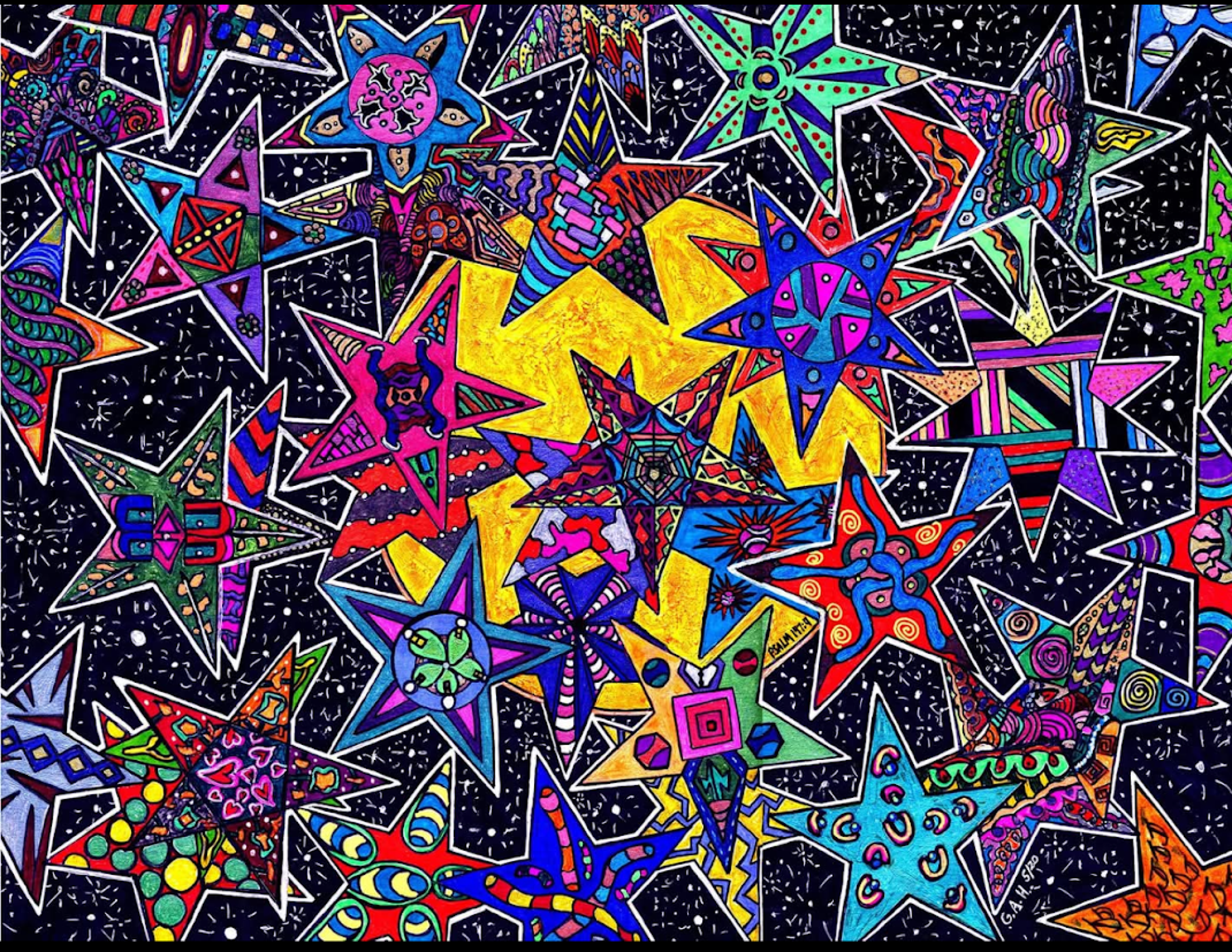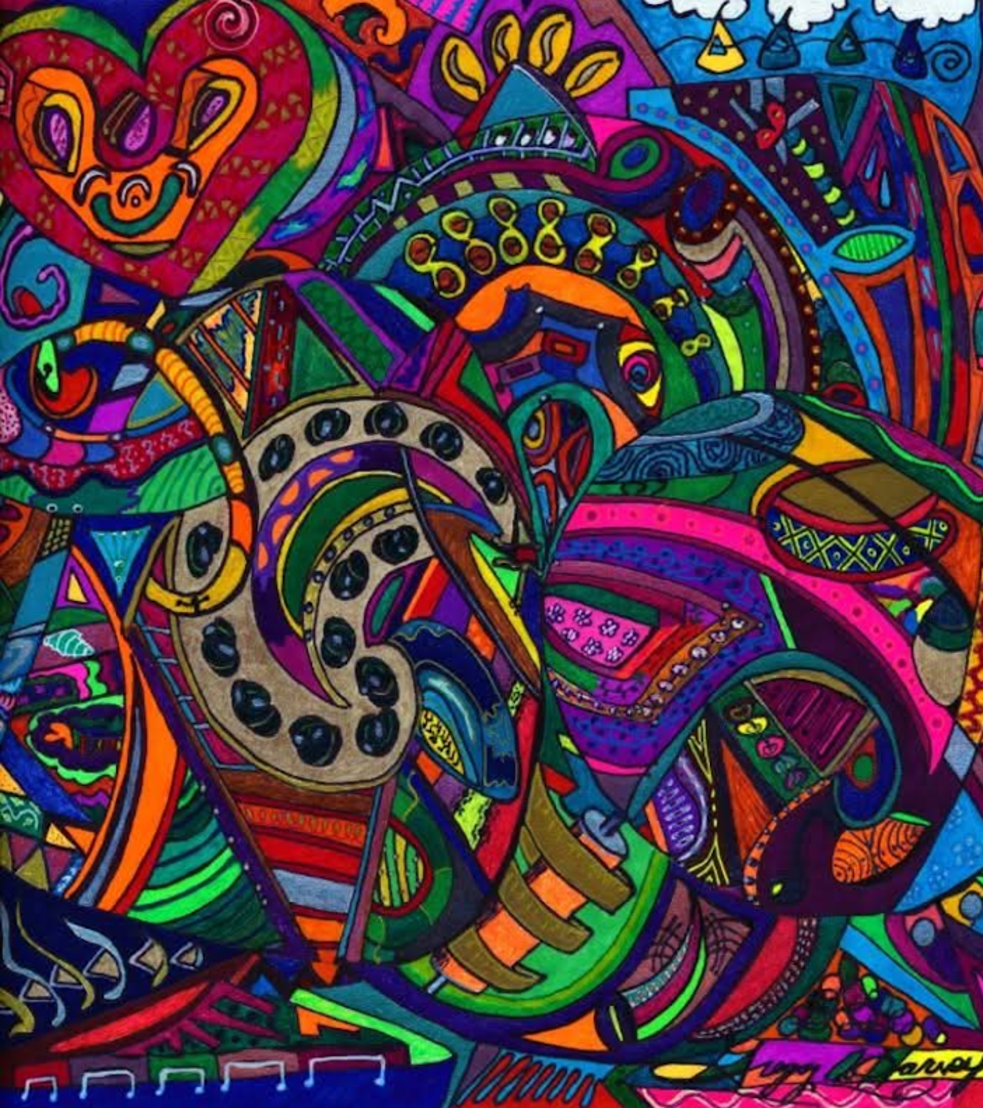 I began creating abstract Zentangle pen and ink art, and then branched into mixed media, paints, gels, glitter pens, and even digital manipulation.