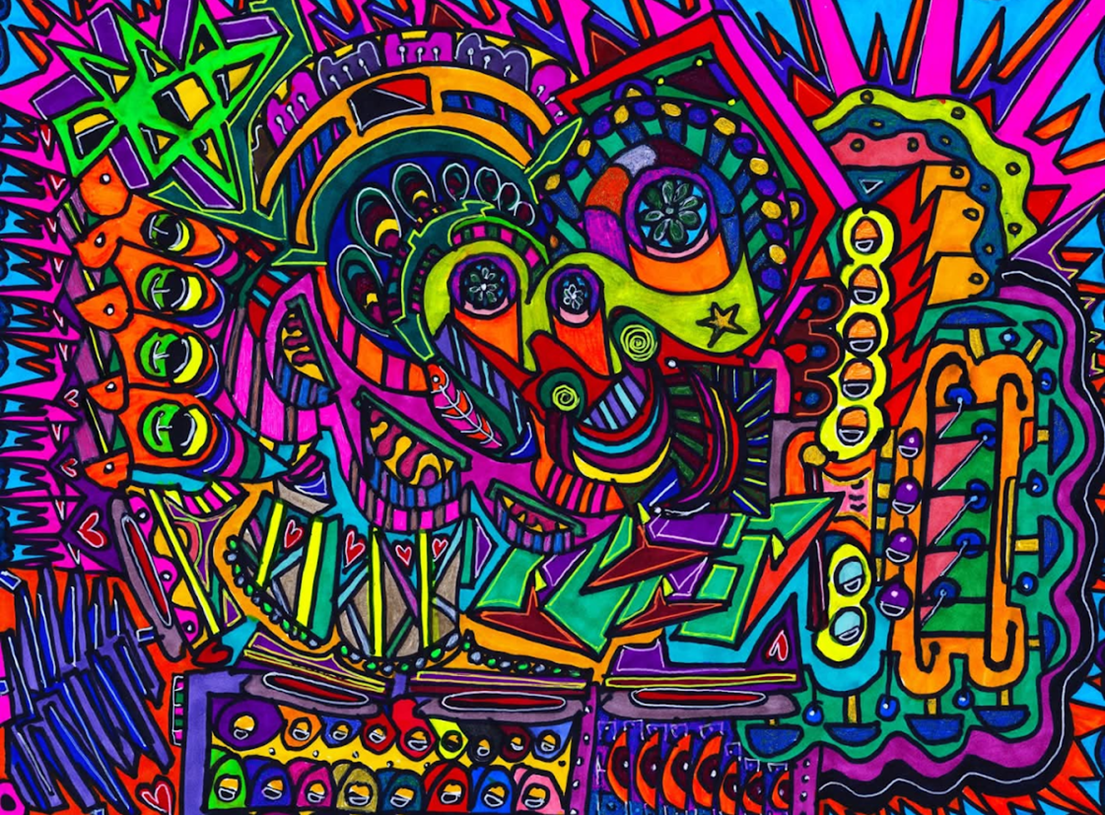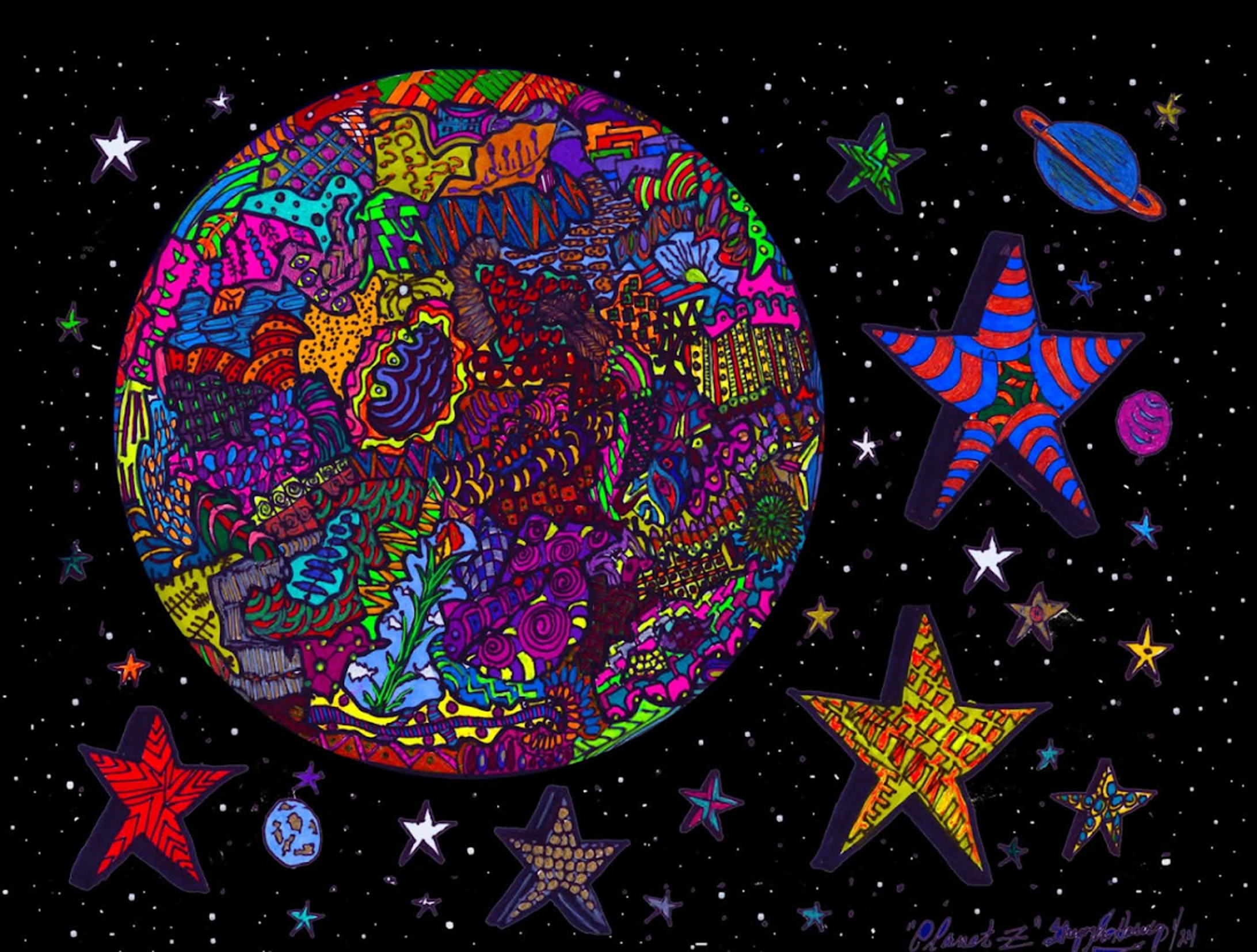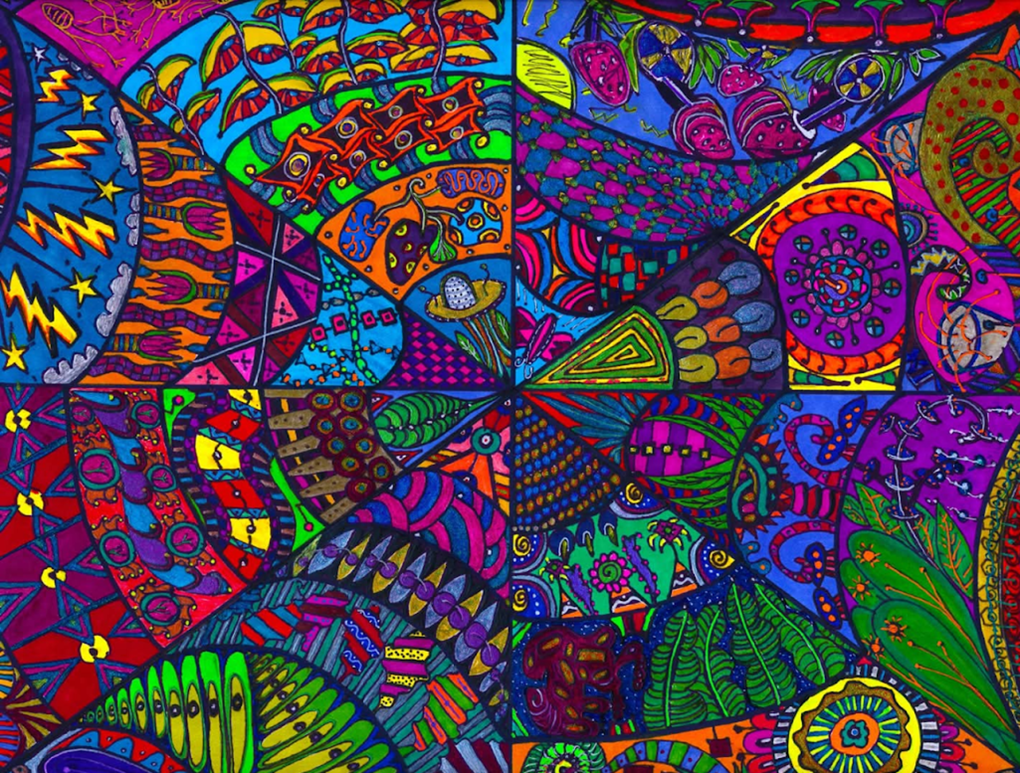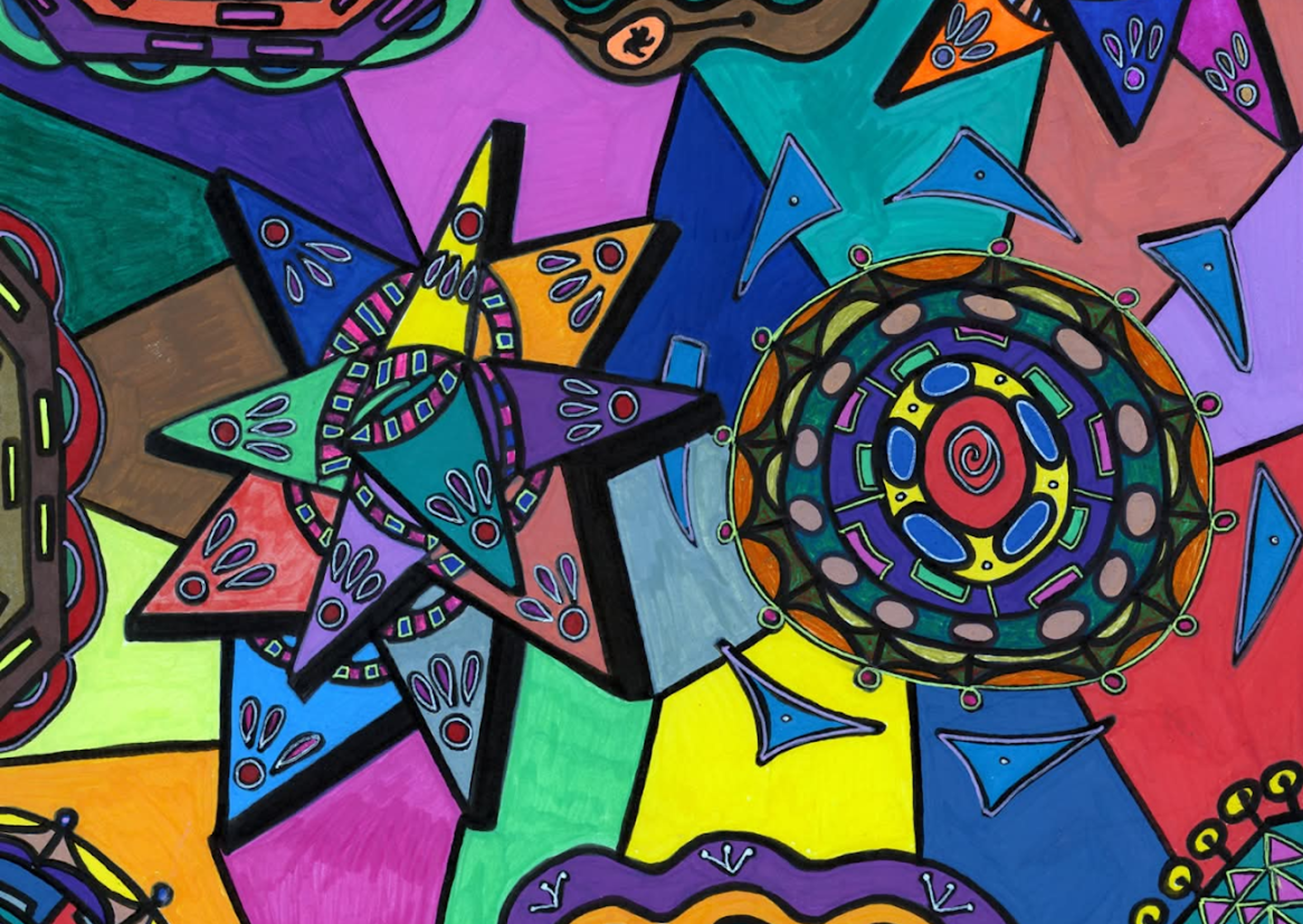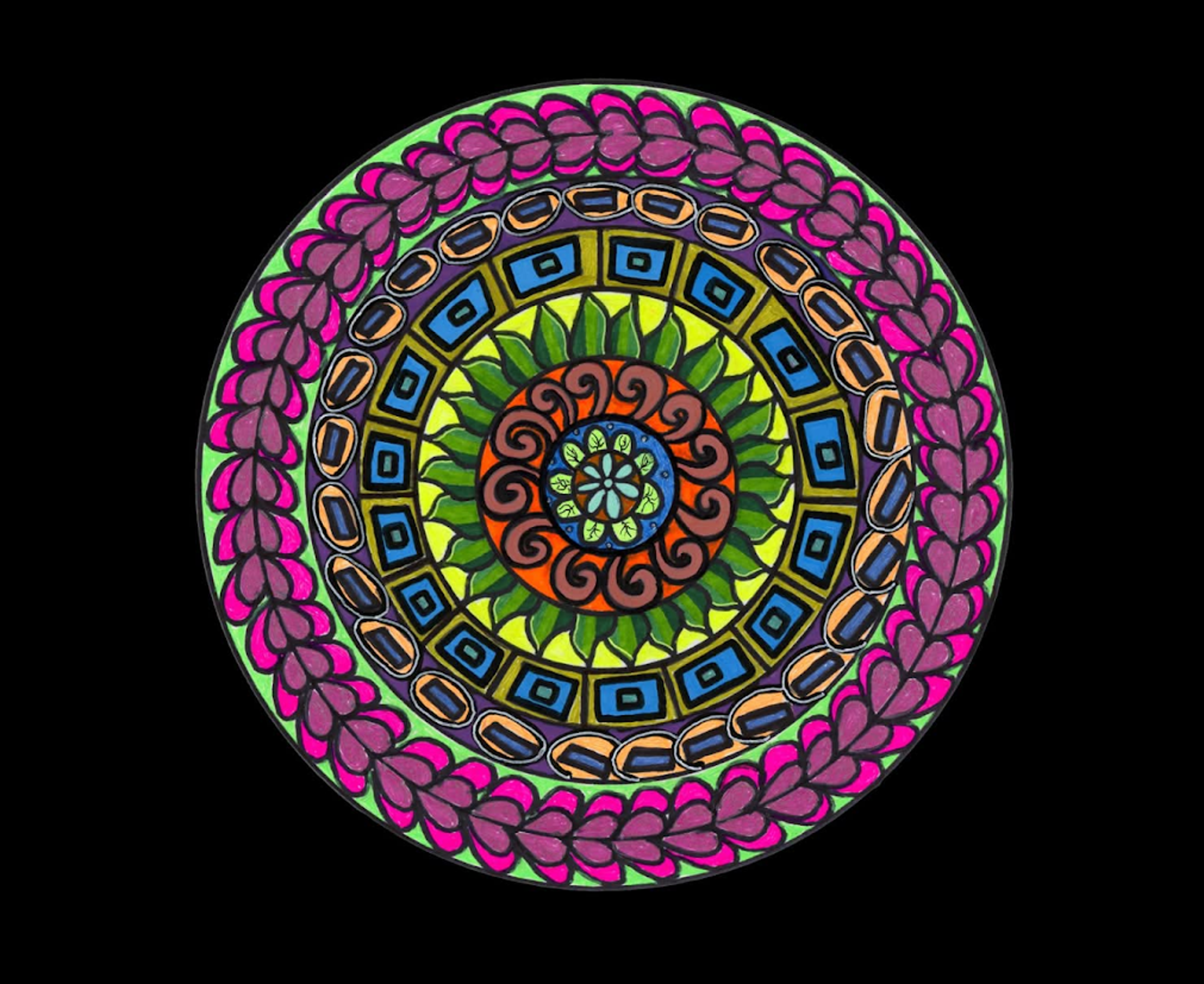 I began creating abstract Zentangle pen and ink art, and then branched into mixed media, paints, gels, glitter pens, and even digital manipulation.
